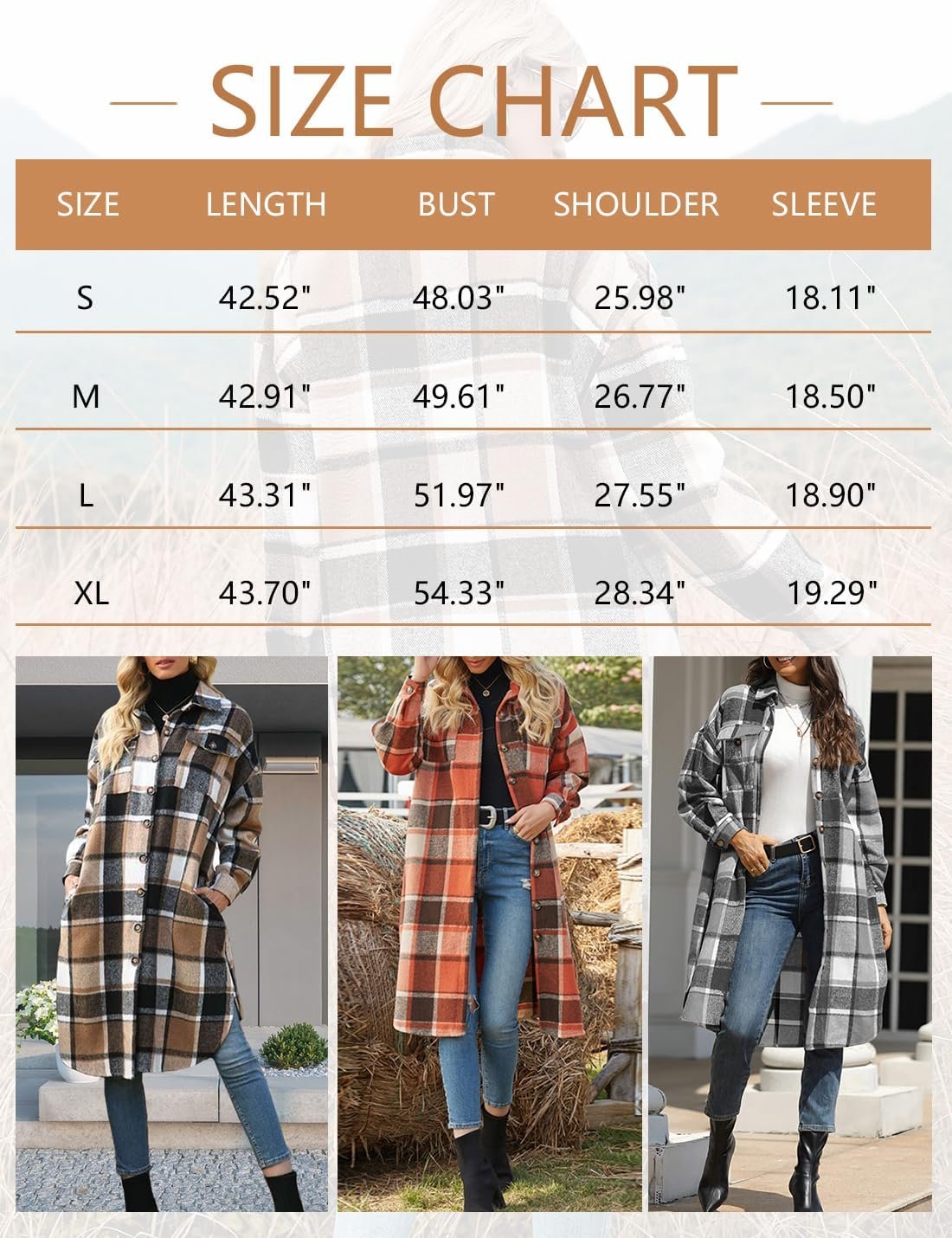 SKIKYAN FLANNEL PLAID LONG SHACKETS FOR WOMEN