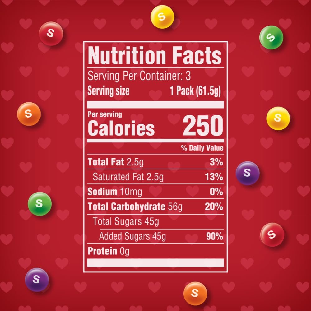 Contains one (1) 6.51-ounce, Valentine’s Day heart candy box of SKITTLES Original Valentine’s Day Chewy Candy