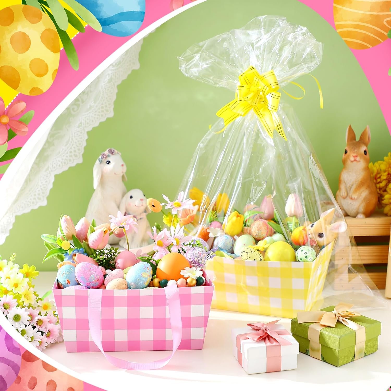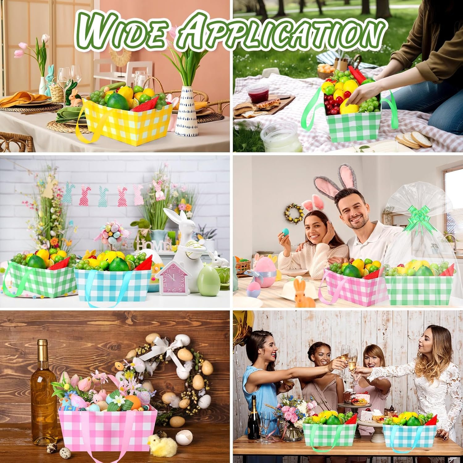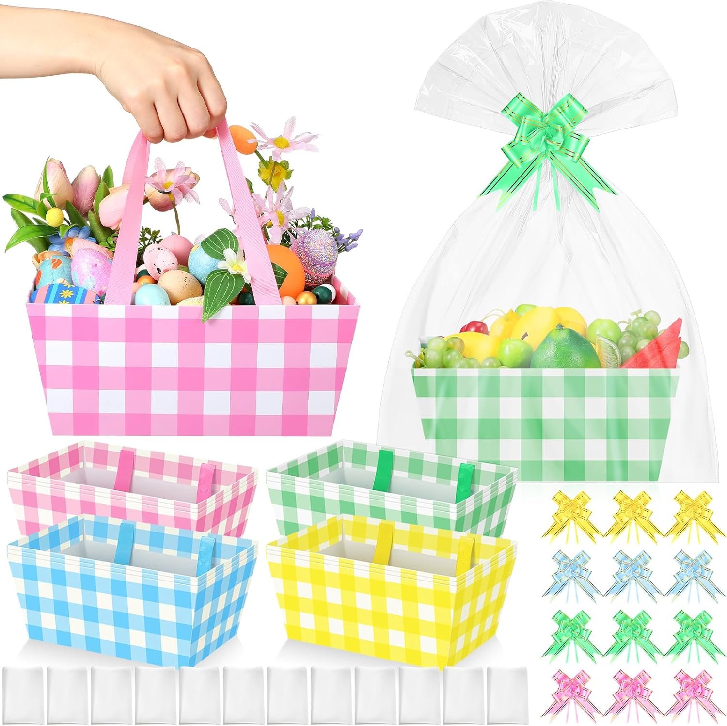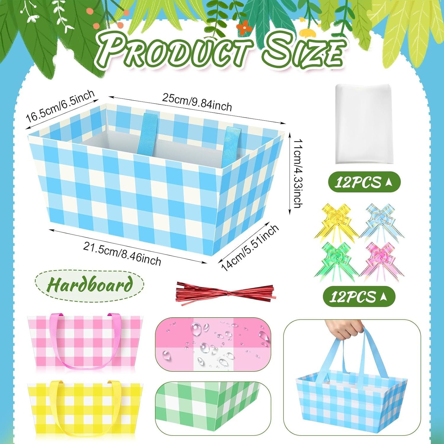 Easter Theme Design: these gift baskets feature the classic Easter color scheme and grid pattern design, adding a delightful touch; When paired with the included bow ties and gift bags, they express the sentiment behind your gift, whether filled with treats or thoughtful items
