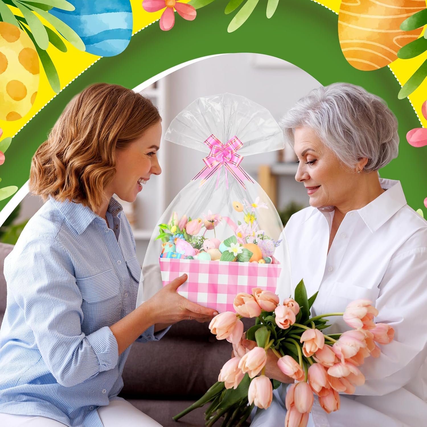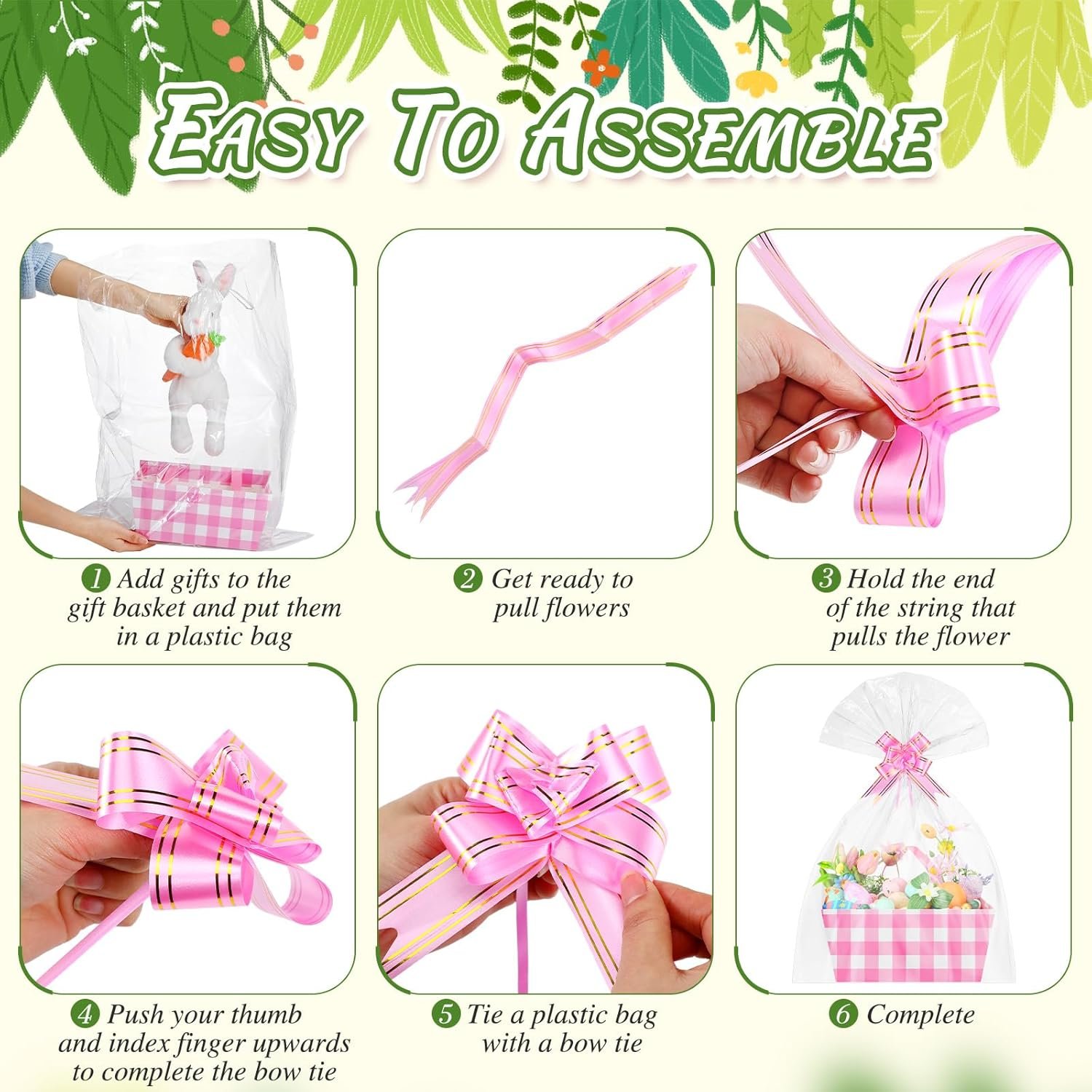 Easter Basket for Gift: the gift basket empty set contains 12 Easter empty baskets with 12 plastic bags, 12 colorful bow ties, and 12 twisted knots; Providing ample accessories for your Easter gift packaging needs; These beautiful sets add charm and warmth to your Easter celebrations