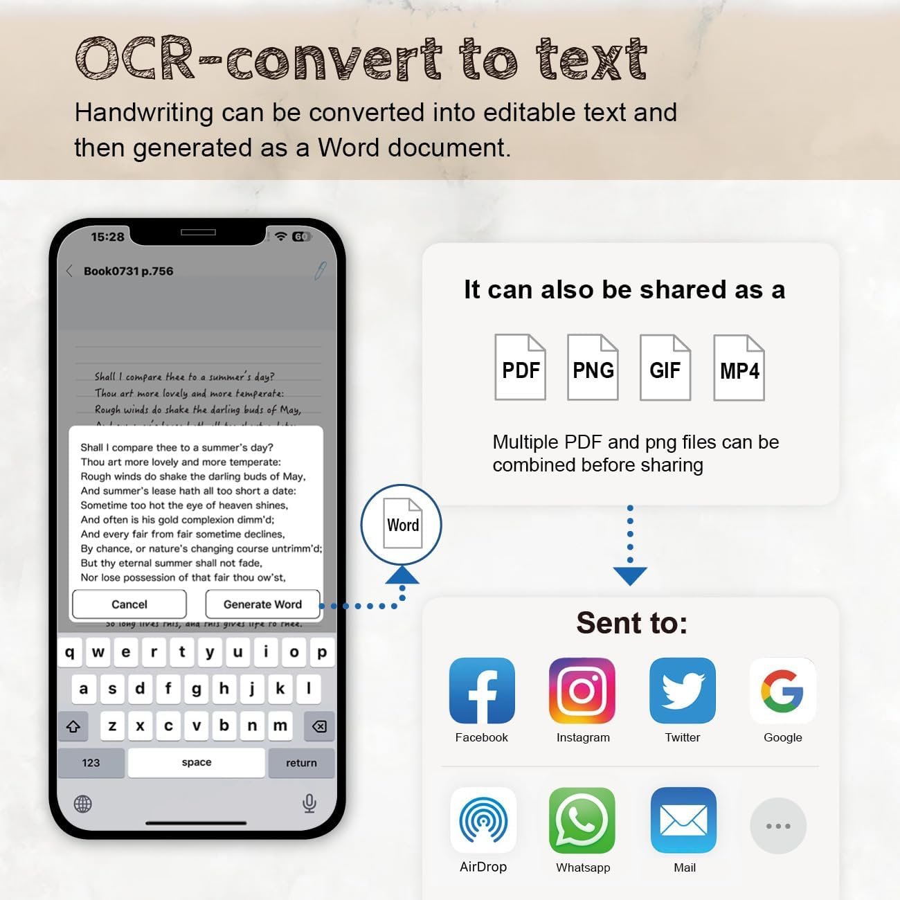 Convert ideas into editable digital formats, organize notes, and share across App. Ideal for students and professionals.