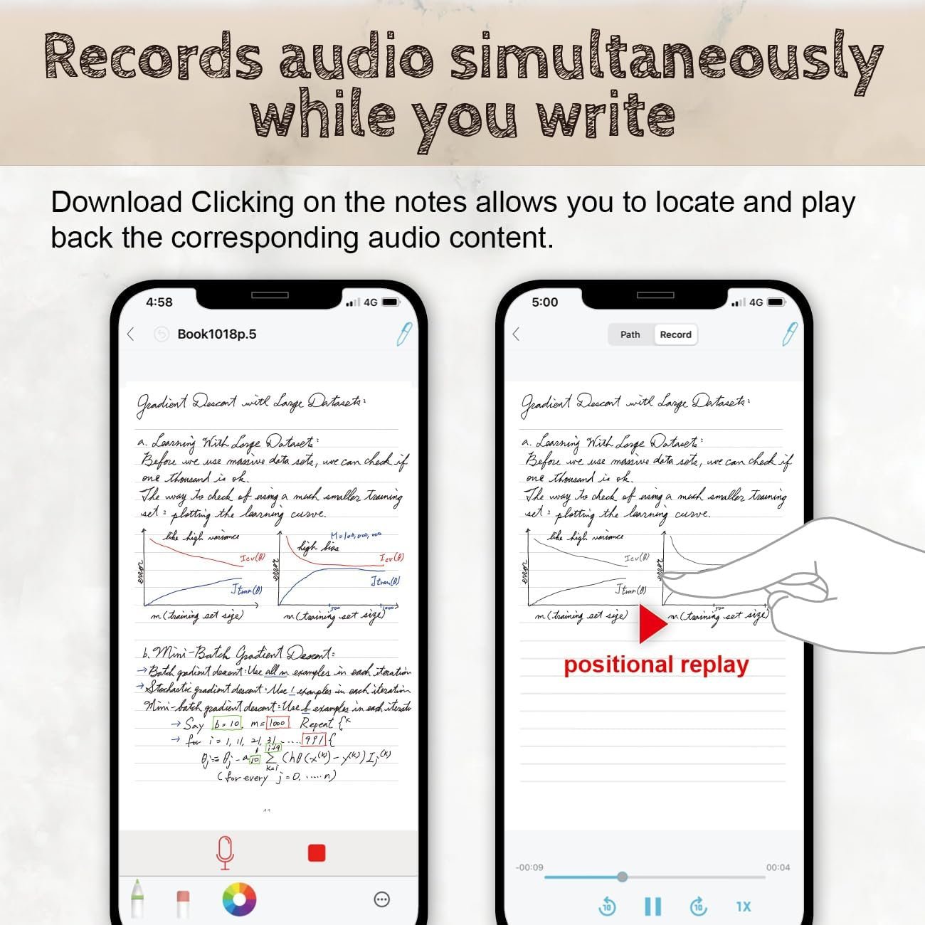 The smartpen connects to the app to digitally capture your writing on Paper Notebook.
