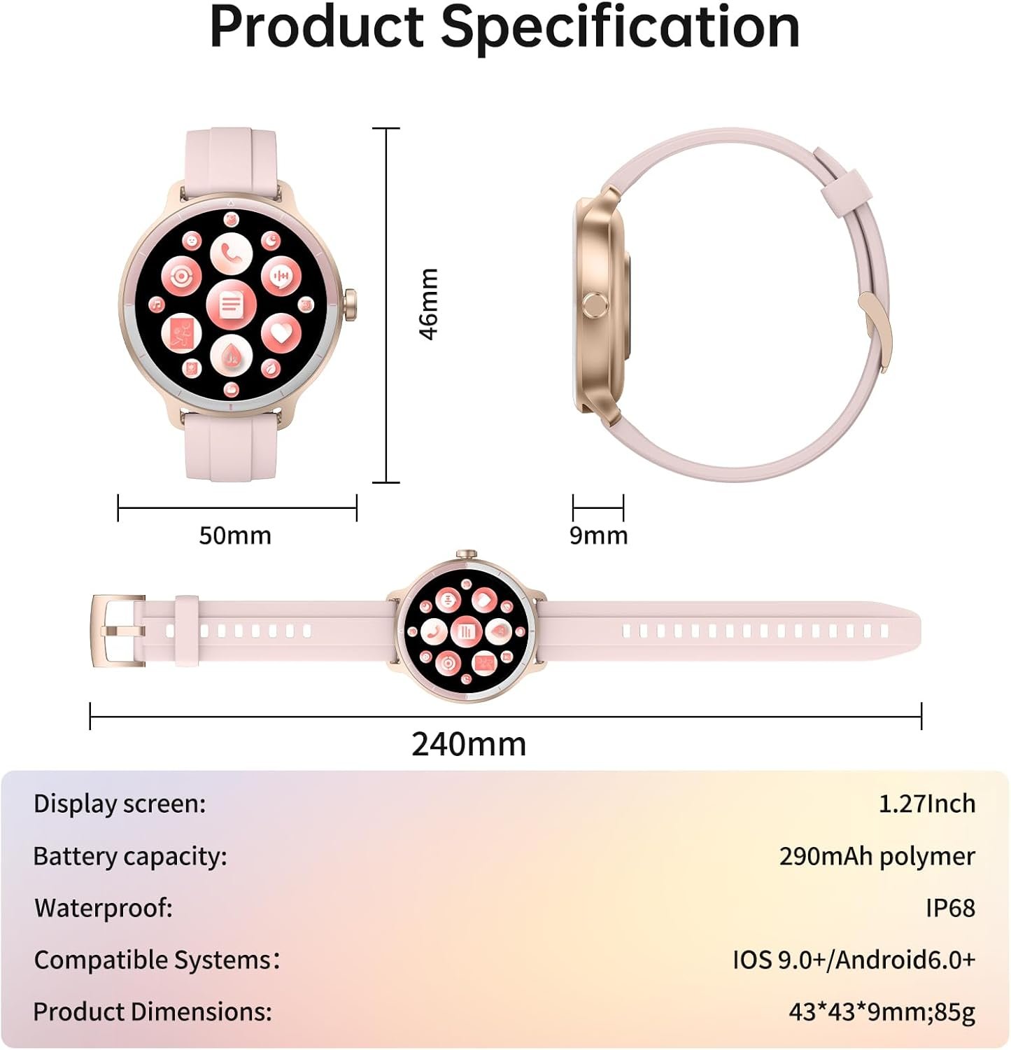 24/7 Health Watch Monitoring & 100+ Sports Modes: This android smart watch auto-tracks heart rate, SpO2 every 5 mins, analyzes sleep stages (deep/light/REM), and monitors stress. 100+ sports modes (running/swimming/yoga) record steps/calories/distance with GPS route mapping. Sync data to your phone to view trends and set goals. Engineered as a running watch, it is compatible with iOS 9.0 / Android 6.0 and above.