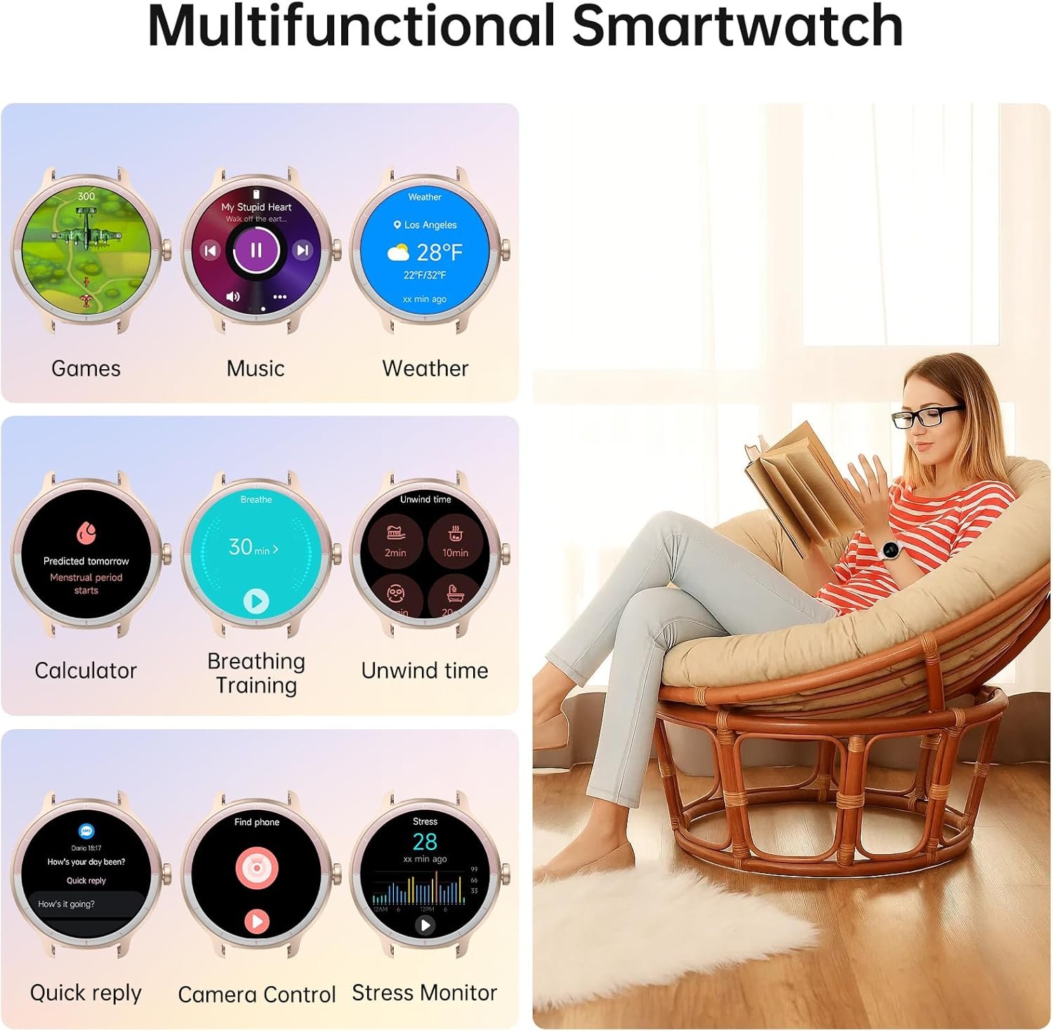 Smart Watch with Bluetooth Call & AI Voice Assistant: Experience seamless connectivity with this smart watches for men women. The 1.27″ HD circular display enables direct Bluetooth 5.3 calls: answer/make calls, store 20 frequent contacts, review call history. Activate built-in AI voice (“Hey Siri”/”Hey Google”) to make calls, control music playback, or check real-time weather hands-free. Elevate efficiency during workouts/commutes with instant voice commands.