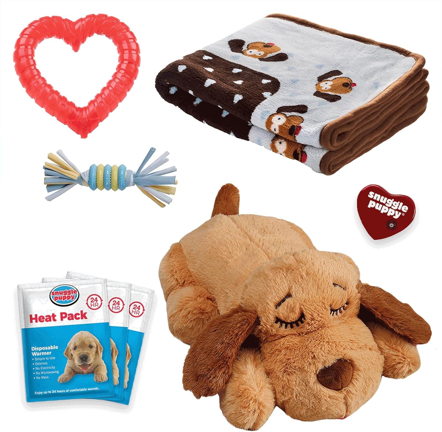 ORIGINAL SNUGGLE PUPPY ESSENTIALS STARTER KIT: The ultimate gift for new dog owners – contains an Original Snuggle Puppy in Biscuit, 3 heat packs, a Snuggle Puppy blanket, puppy’s 1st toy and our puppy teething toy.