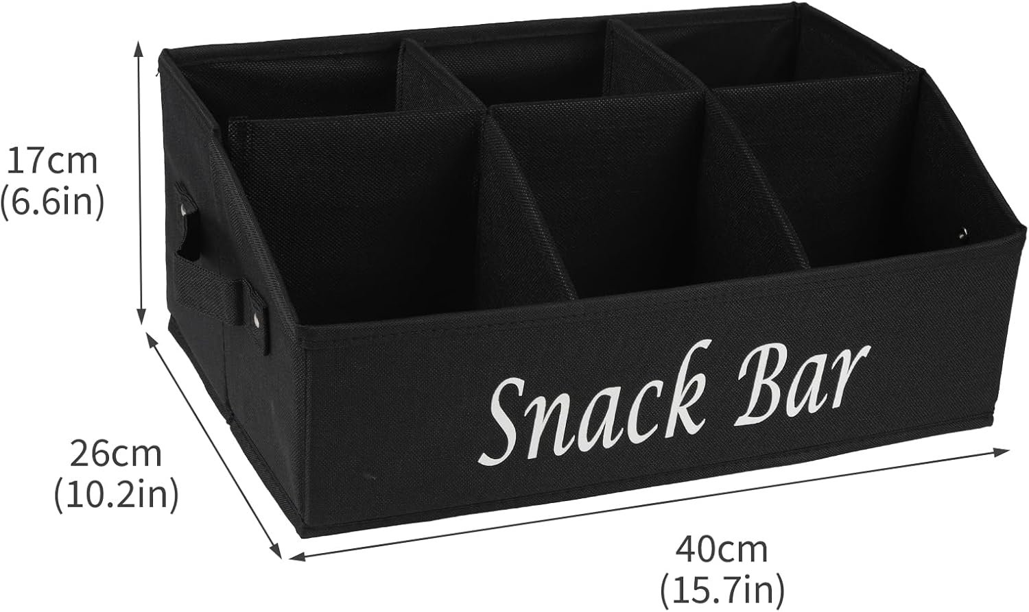 6 Compartments Snack Organizer: This snack organizer for countertop has 6 spacious compartments, the front 3 compartments can be used to store snacks, packets, pouches and more, and the back compartments have enough height to store your drinks, bottles, stack disposable cups, etc. What’s more, the dividers can be removed to fit various models of snacks and unlock more possibilities.