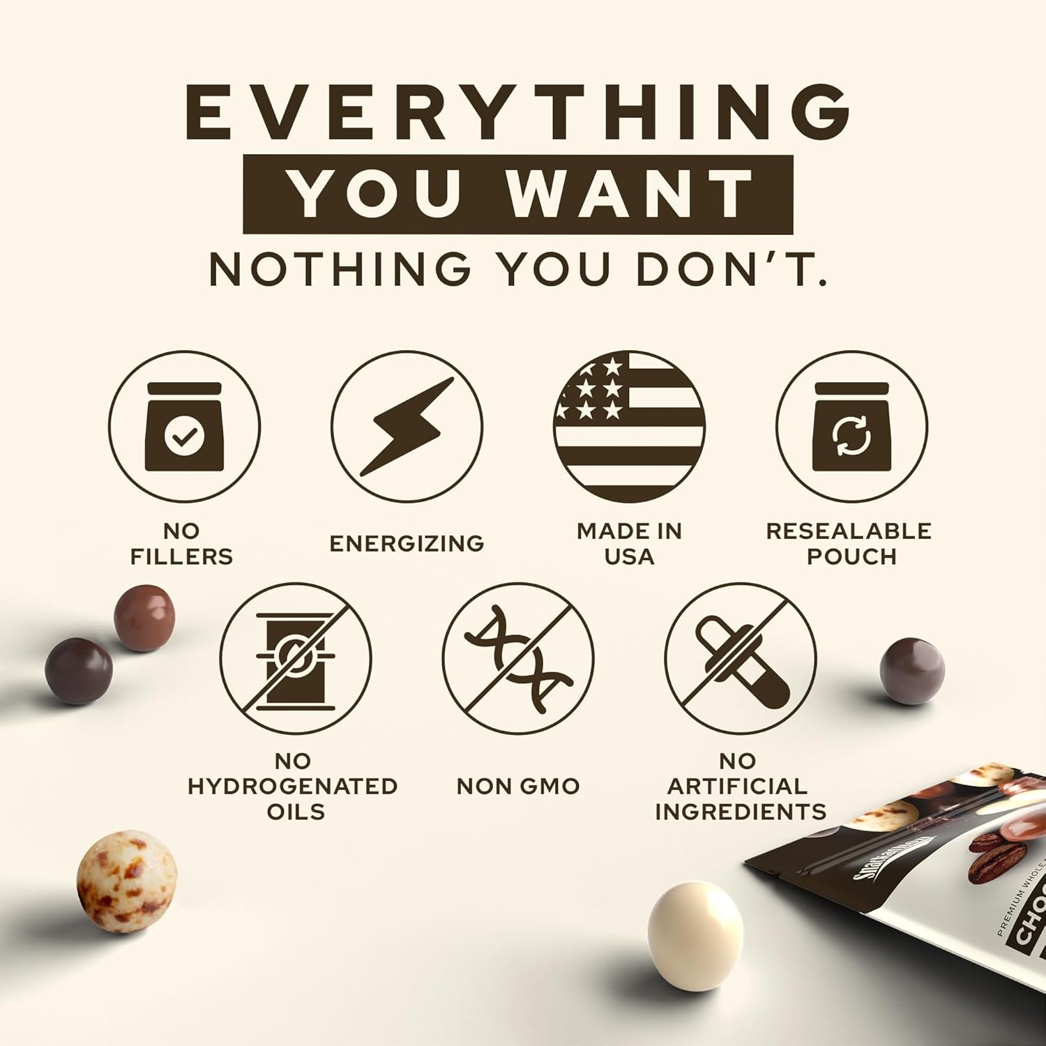 Create a balanced, energizing mix by adding dark chocolate covered espresso beans to your nuts. Blend chocolate covered coffee beans with almonds, cashews, or dried fruit for a sweet, crunchy snack that’s indulgent, functional, and perfect for work or travel.