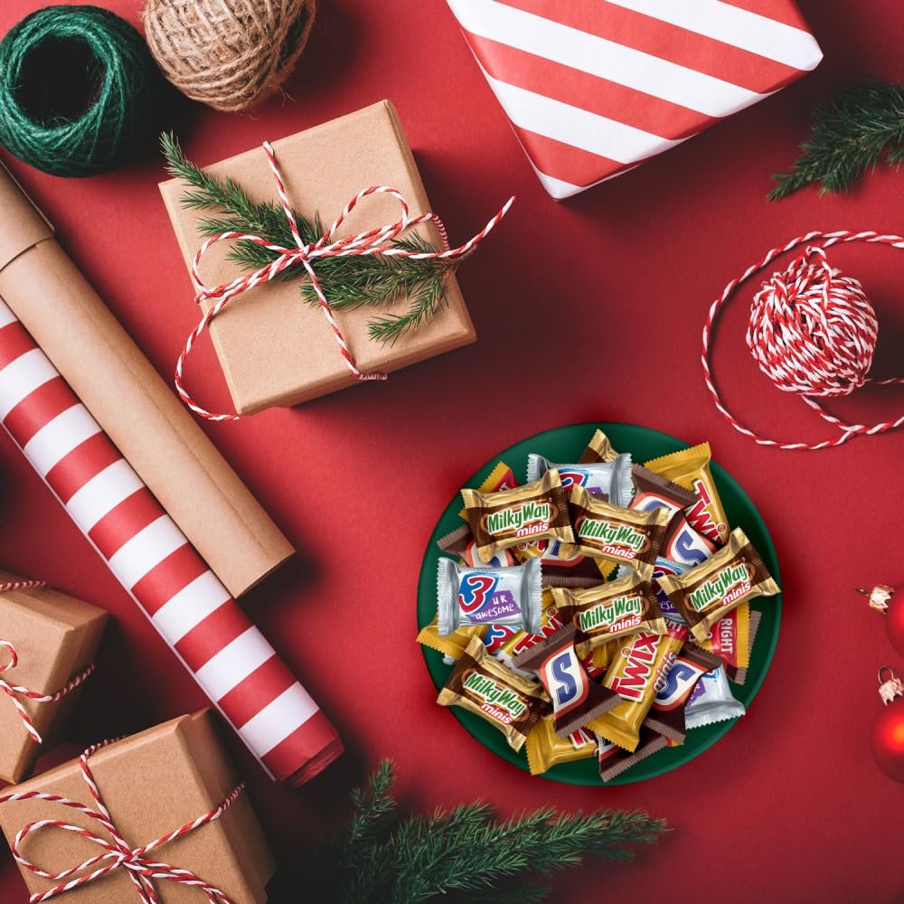 Features a miniature assortment of SNICKERS Candy Bars, TWIX Caramel Cookie Bars, MILKY WAY Caramel Chocolate Bars, and 3 MUSKETEERS Chocolate Candy Bars