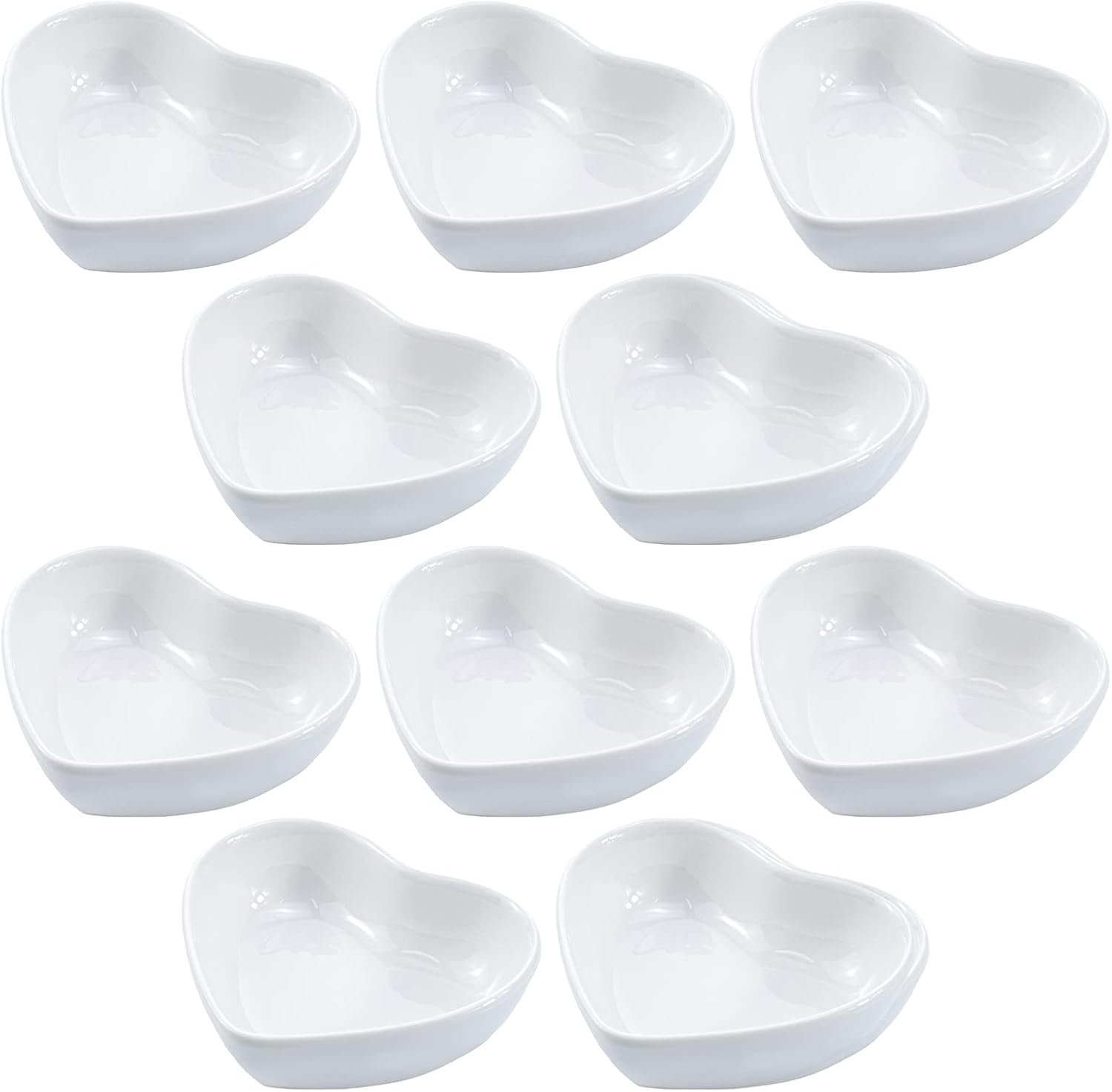 SOCOSY Heart-shaped Multipurpose Ceramic Sauce Dish Seasoning Dishes Sushi Dipping Bowl Appetizer Plates Serving Dish Saucers Bowl(Set of 10)