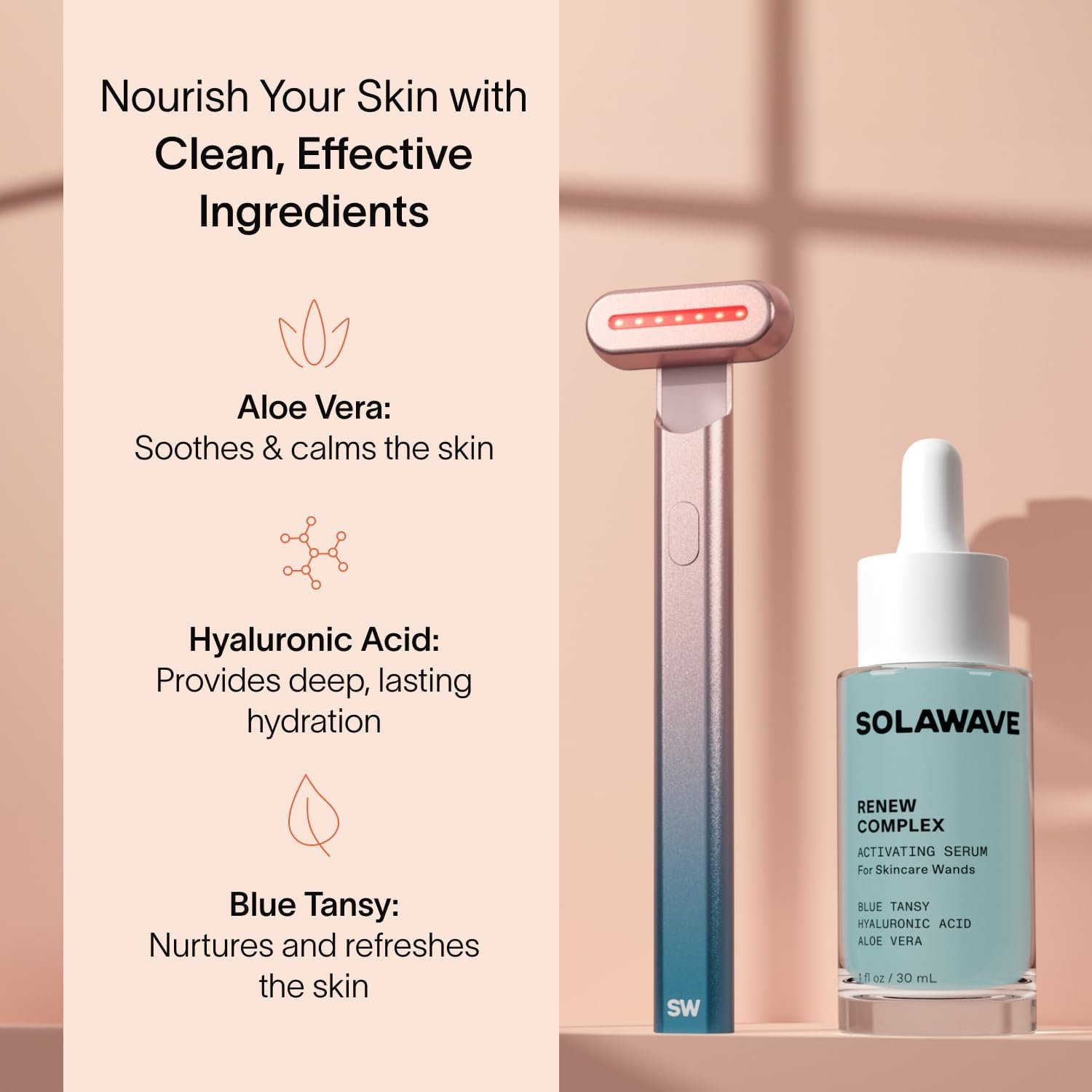 Optimized Performance with Renew Complex Serum: This all-natural priming serum hydrates and enhances the effects of red light therapy. Infused with soothing aloe vera, hydrating hyaluronic acid, and Blue Tansy to help calm the skin, it boosts the wand’s 4-in-1 therapy, leaving your skin glowing and refreshed. Gentle and suitable for all skin types.