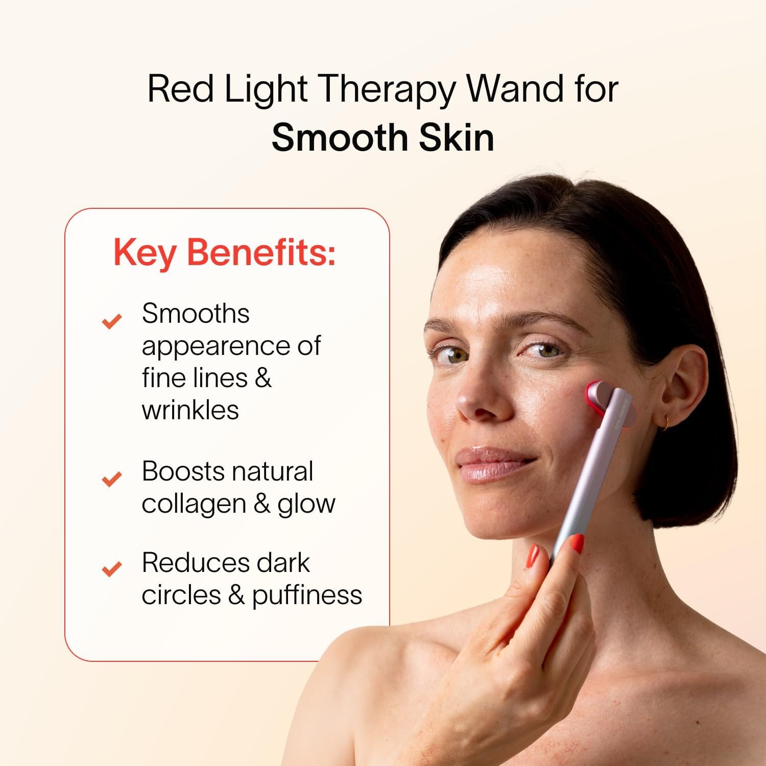 3‑Minute Radiance Boost: In only 3 minutes per area, the wand delivers soothing warmth and red light to smooth fine lines and wrinkles, depuff under‑eyes, and boosts skin’s radiance.