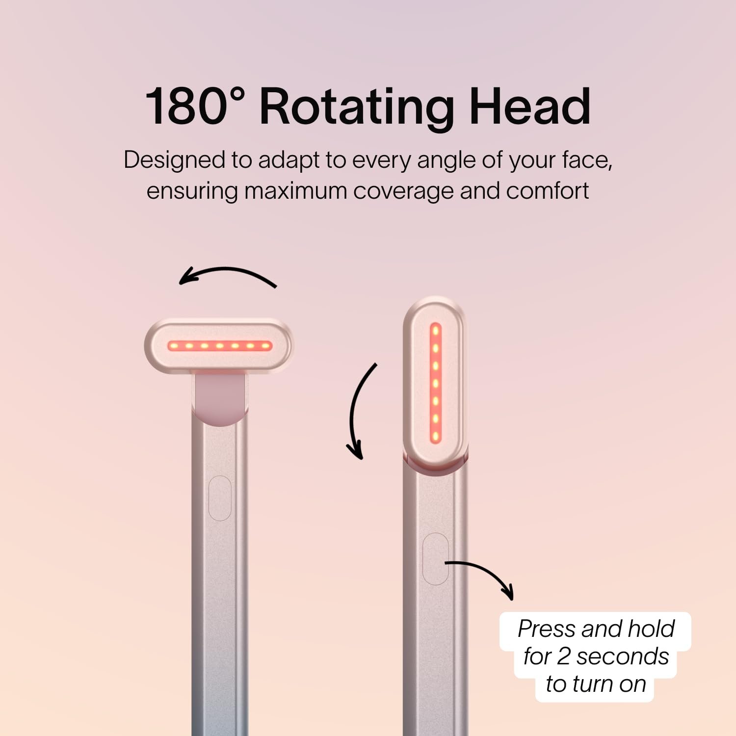 4-in-1 Red Light Therapy Wand for Glowing Skin: Combines Red Light Therapy to smooth fine lines, Galvanic Current for deeper skincare absorption, Therapeutic Warmth to soothe under-eyes, and Facial Massage to reduce puffiness, all in one sleek skincare device.
