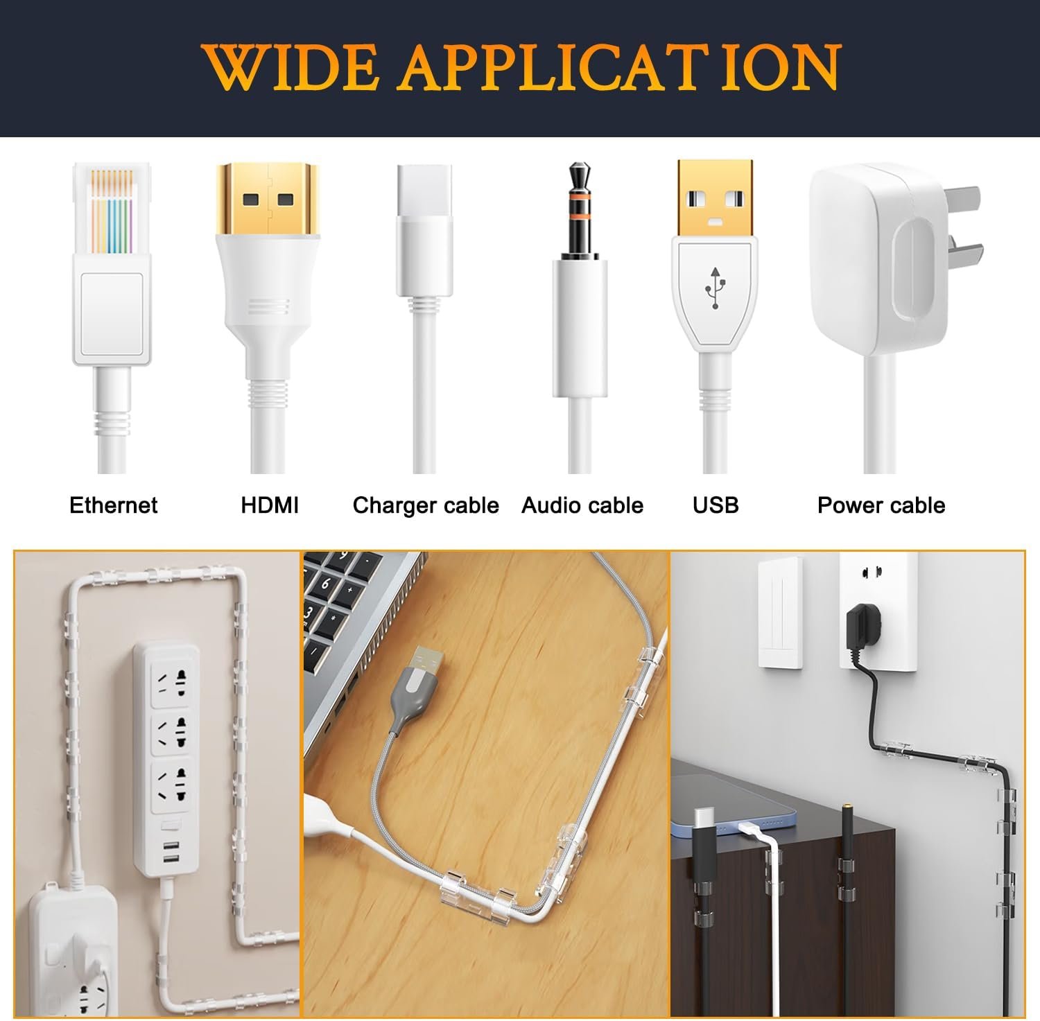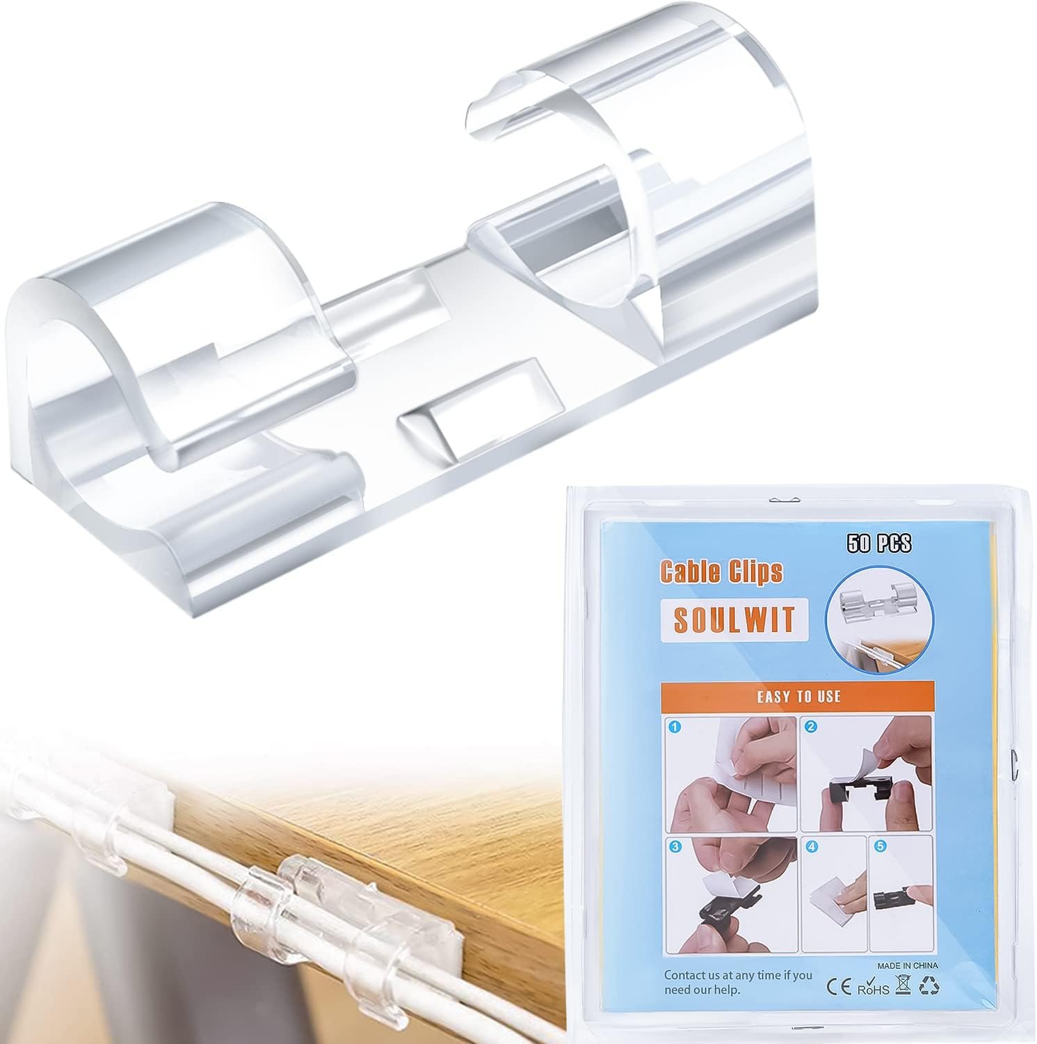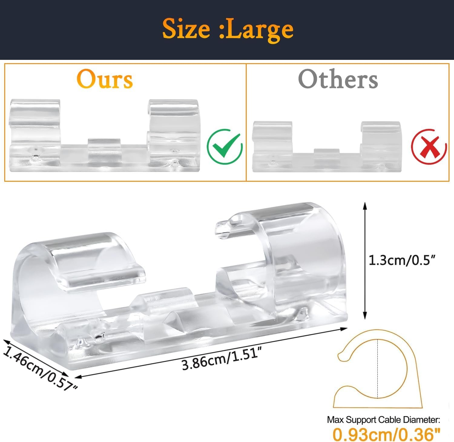 50 Pieces per Package: Maximum Support Cable Diameter: 10mm/0.4″ of the Large size cable clips. Fit most wires, and space-saving.