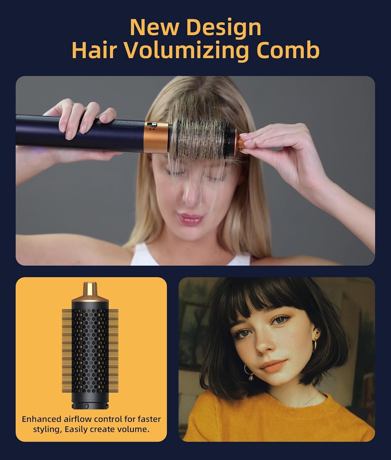 9.【Hair Dryer Multi Styler】110,000 RPM brushless motor, fast drying & low heat damage; 300 million negative ions reduce frizz, leaving hair shiny (frizz free hair multi styler)