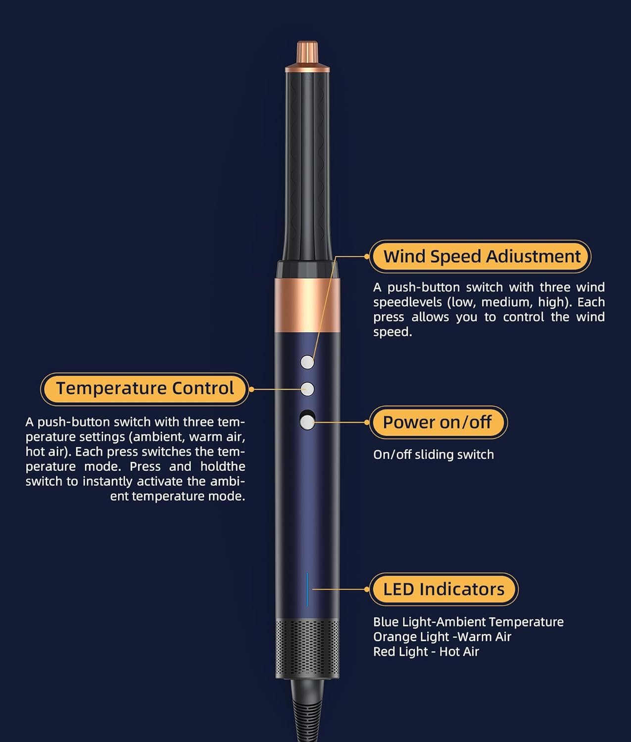 Simplify your hair styling routine with the Sounxun Multifunctional (3+2+2+1) in1 Integrated Functions Hair Styler. This versatile tool combines a hair dryer, curling irons, hair dryer brushes, anda hair straightener, allowing you to effortlessly achieve various hairstyles with just four accessories