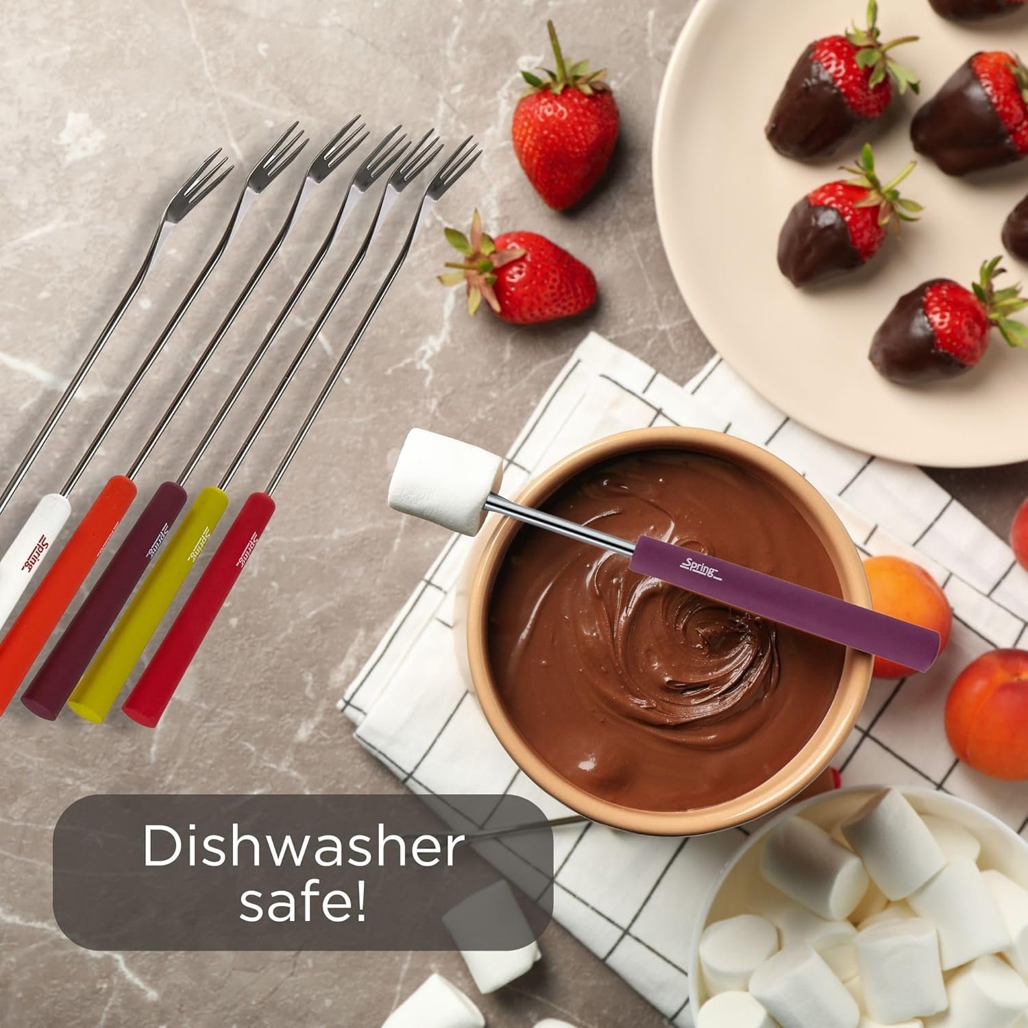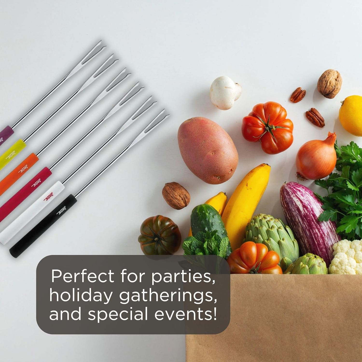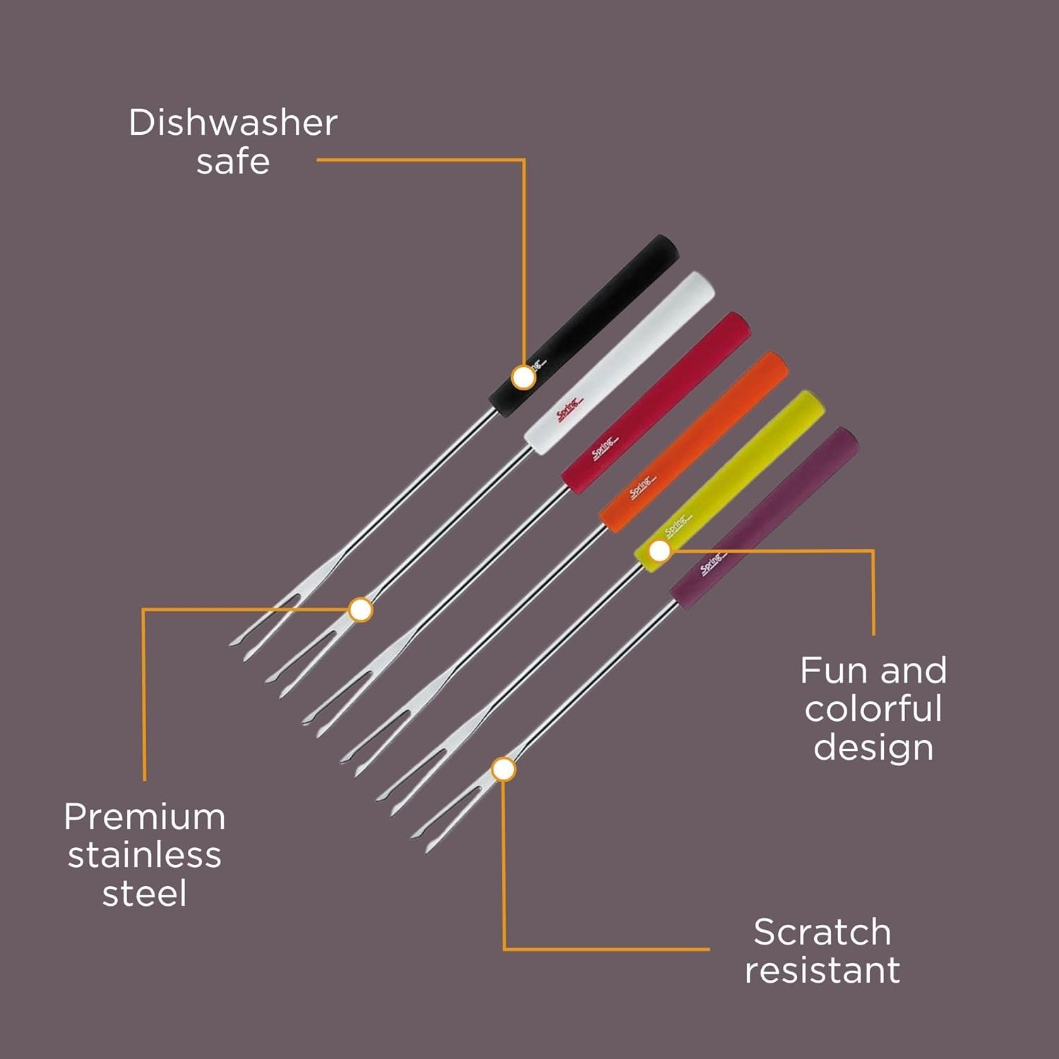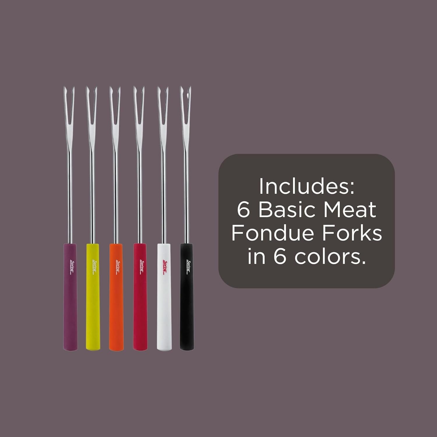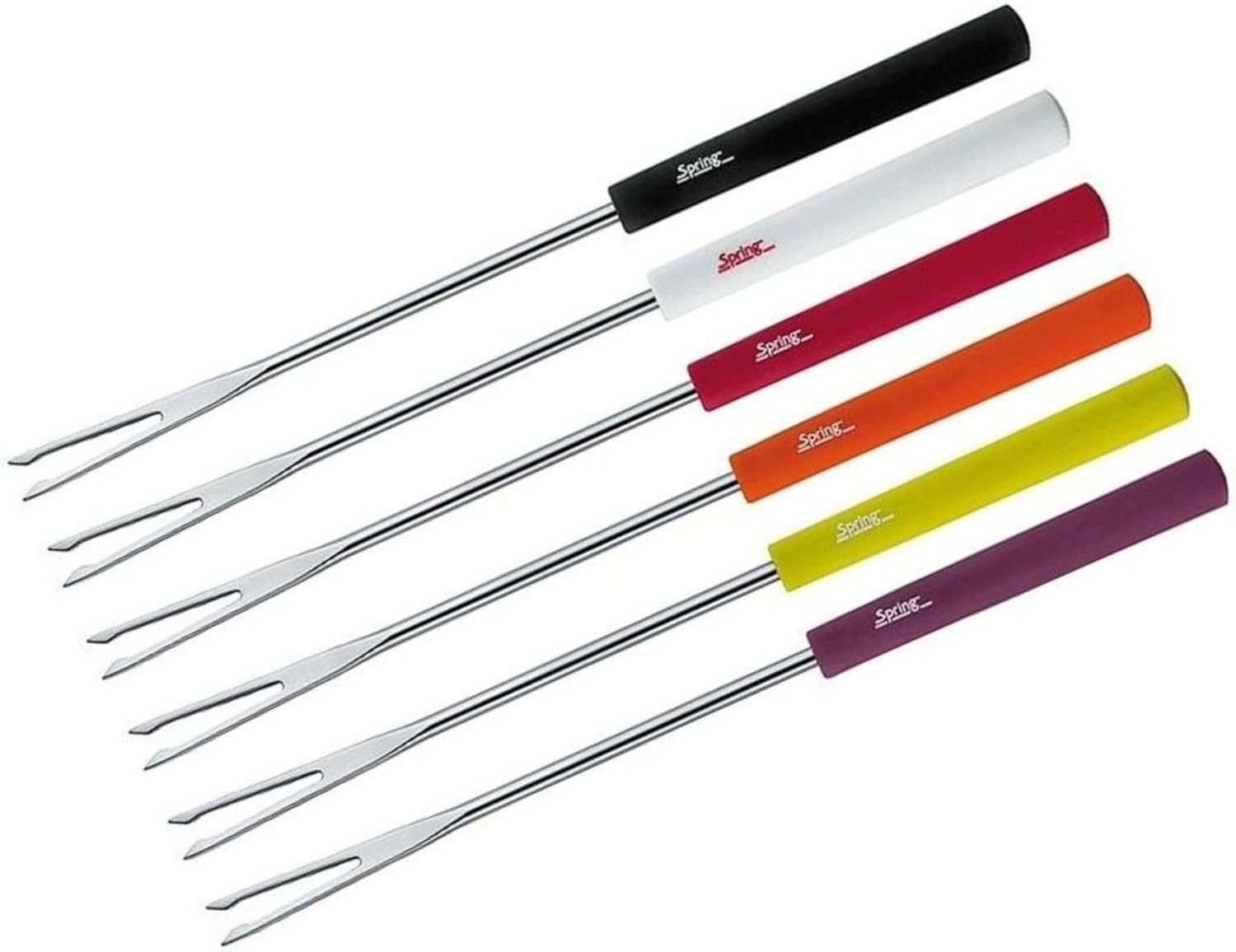 Spring meat fondue forks Basic, colored, 6 pieces, length 26 cm Product features: – length 26 cm – 6 pieces – color: colored – made of stainless steel – plastic handle