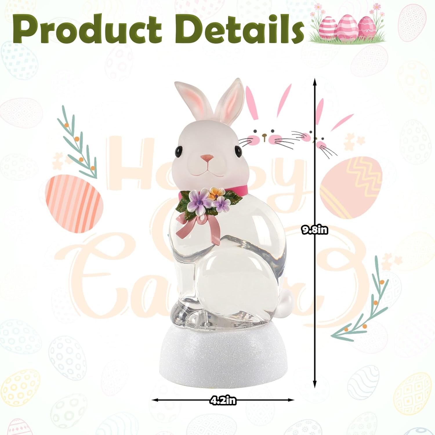 Glitter Bunny Snow Globes: This rabbit snow globe features warm white lights that illuminate the magical scene, creating a soft and welcoming glow, the glittering snowflakes swirling around inside, adding a touch of wonder to your Easter or spring celebrations. Crafted from high-quality resin and sturdy plastic, this durable decoration is perfect for bringing a whimsical, festive atmosphere to your parties and holiday displays.