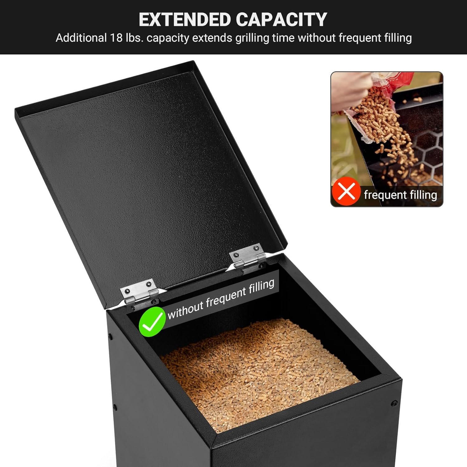 Add 18 lbs of pellet capacity to your Traeger wood pellet grill