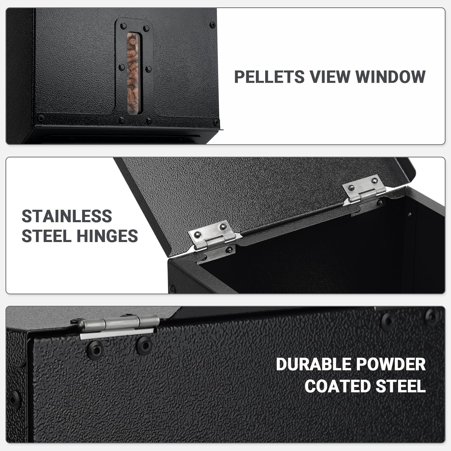 Durable black powder coated steel complements your pellet smoker