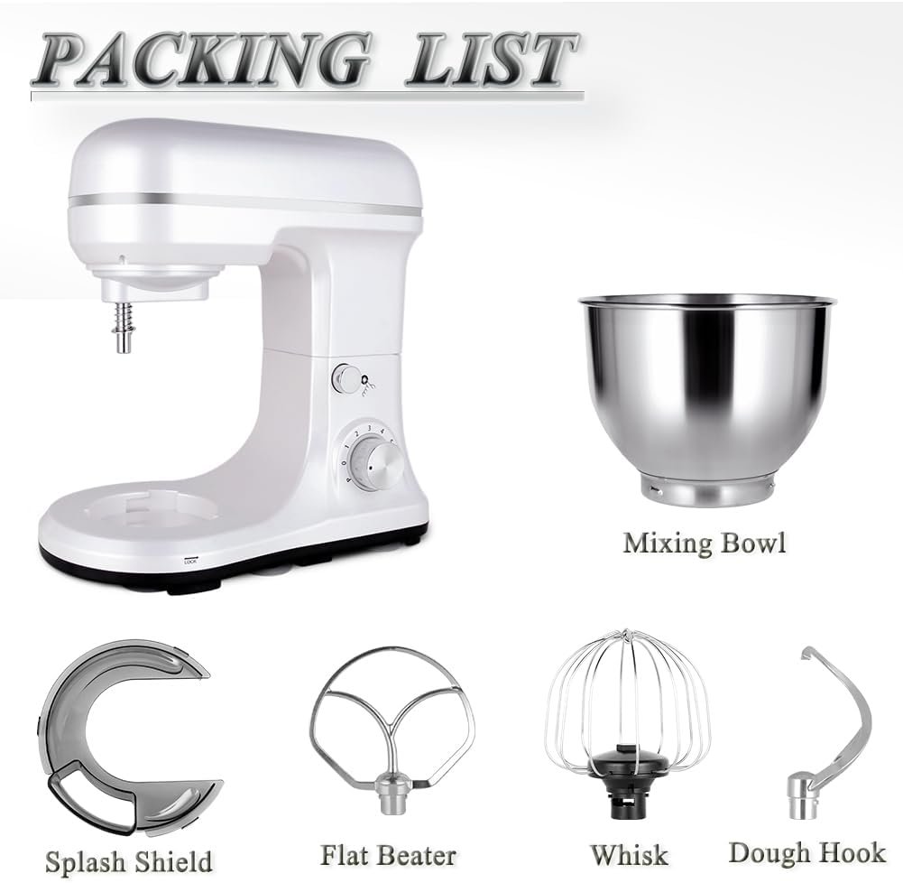 【5 Qt Stainless Steel Bowl】- The capacity for MURENKING baking mixer can meet a home kitchen needs, including baking bread, cakes, cookies, biscuit,muffin and so on. Easy to use, just sit the mixing bowl down in the holder and then give it slight twist to lock it.
