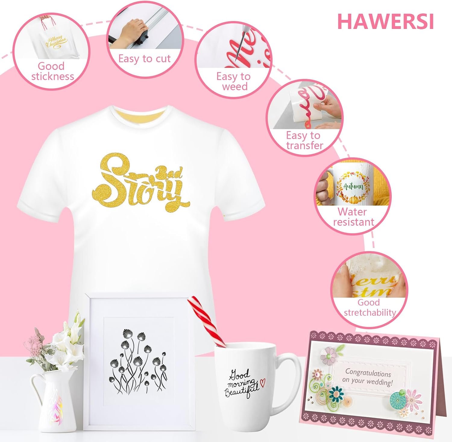 Premium Material Bundle:Our cutting mats are crafted from durable material for long-lasting use.The heat-transfer vinyl and permanent adhesive vinyl are designed for easy cutting, weeding, and peeling,offering strong adhesion and washability. You’ll also receive cardstock kits in multiple colors for creating exclusive greeting cards with ease, along with blank stencil sheets compatible with cutting machines and laser cutting