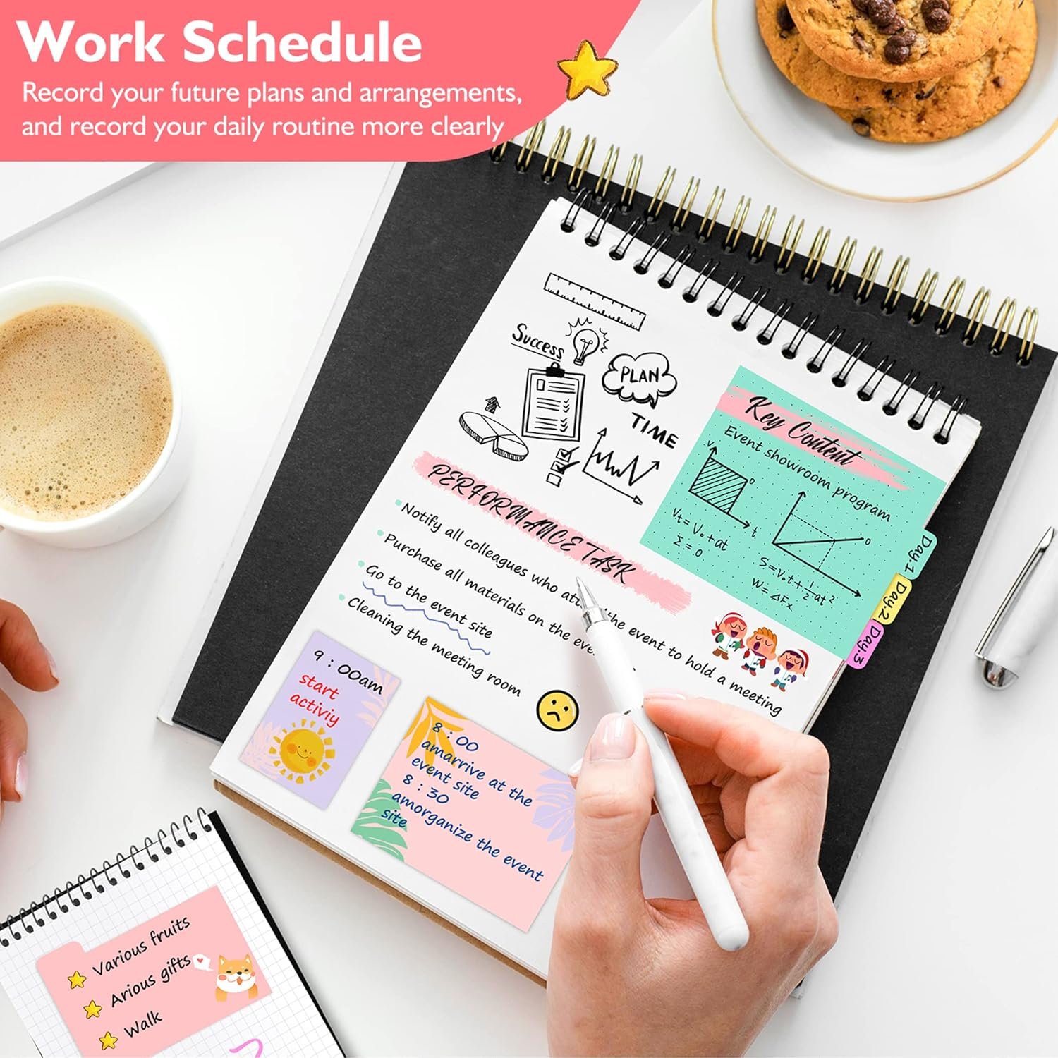Get Everything Organized – From color coding your documents to bookmarking important pages, these sticky notes will get you organized. The paper of notepad is sturdy, ink does not bleed through, portable and super handy to set goals. Removable adhesive for easy re-positioning, you can take them off without ripping the paper.