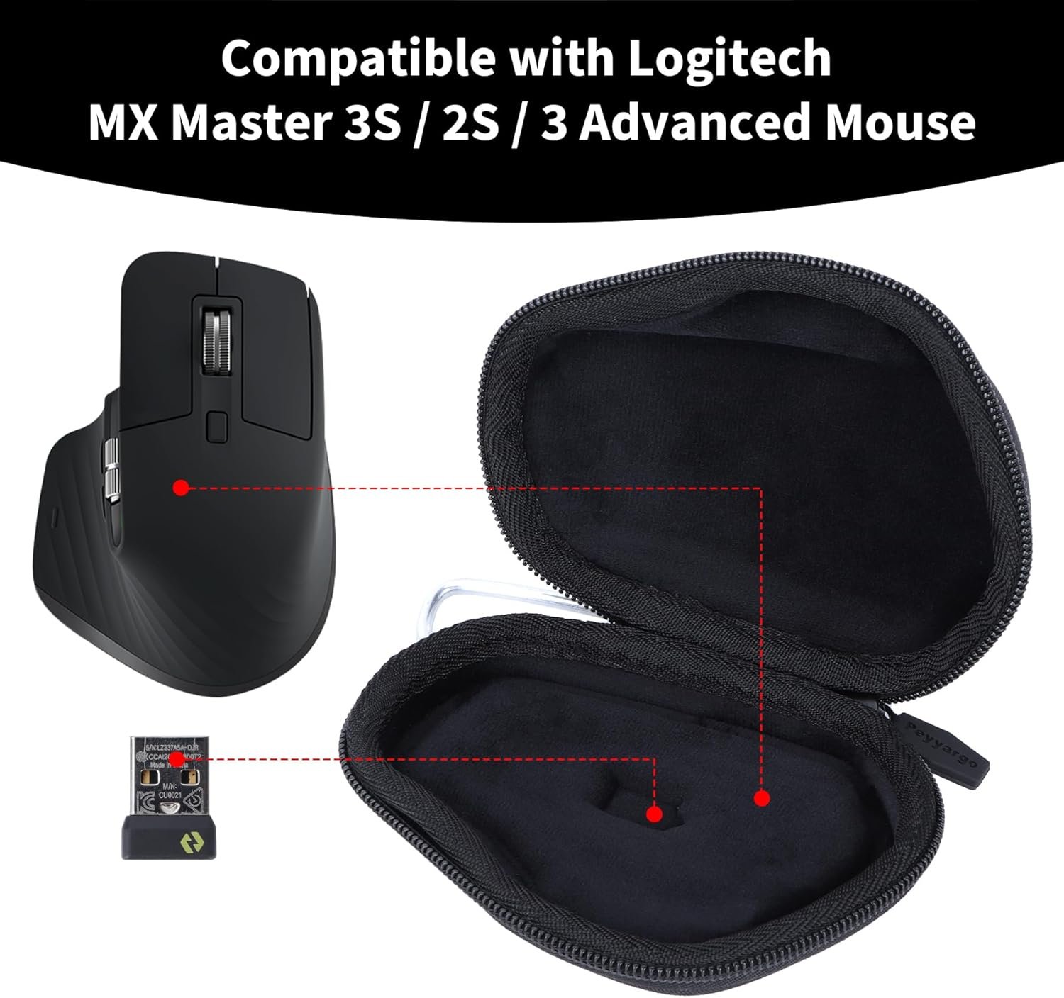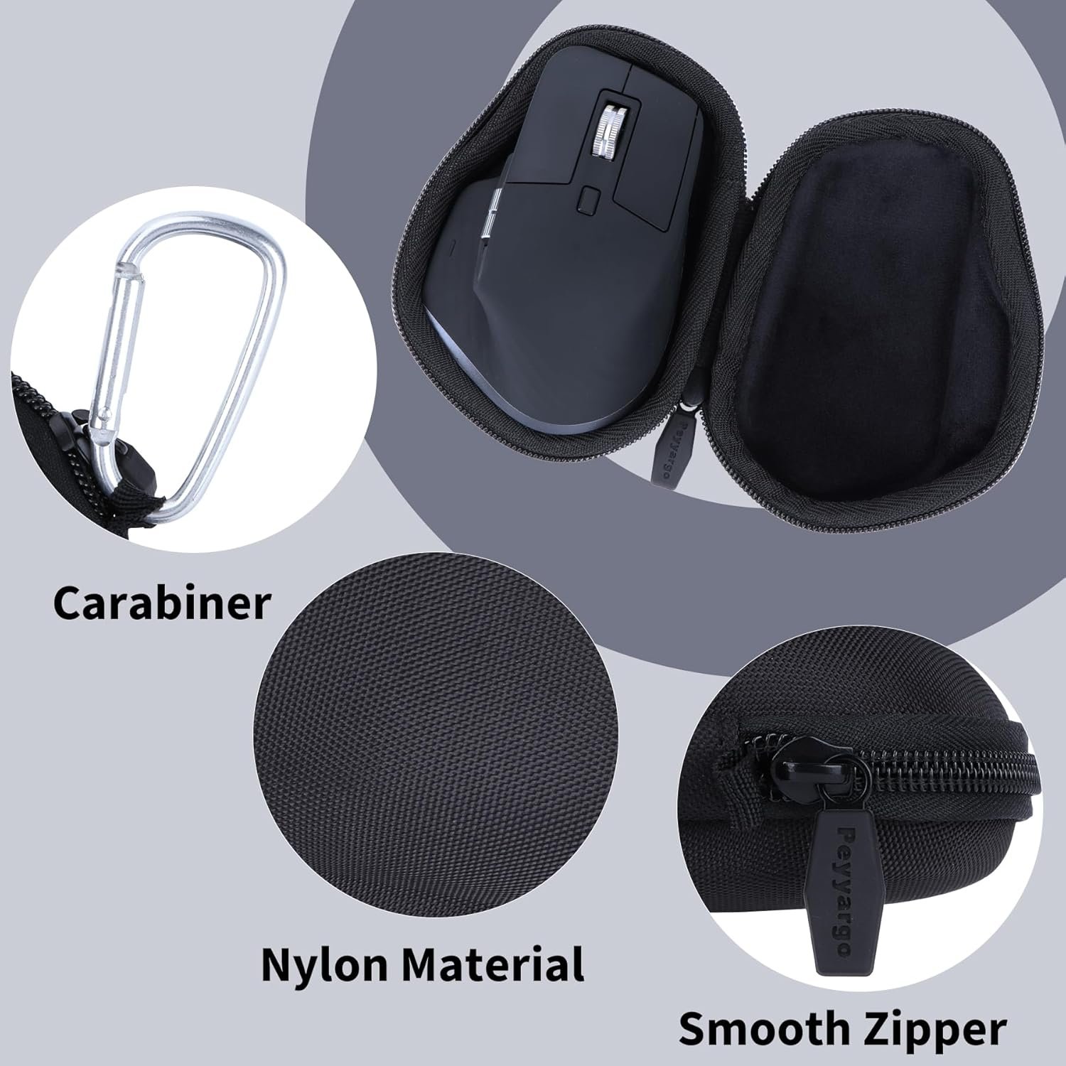 Simple design: Peyyargo Logitech MX Master 3S or Logitech MX Master 2S or Logitech MX Master 3 advanced mouse storage case is a case designed specifically for Logitech MX Master 3S or Logitech MX Master 2S or Logitech MX Master 3 advanced mouse. This convenient case compatible with Logitech MX Master 3S or Logitech MX Master 2S or Logitech MX Master 3 advanced mouse, and the zipper design also protective the Logitech MX Master 3S or Logitech MX Master 2S or Logitech MX Master 3 advanced mouse