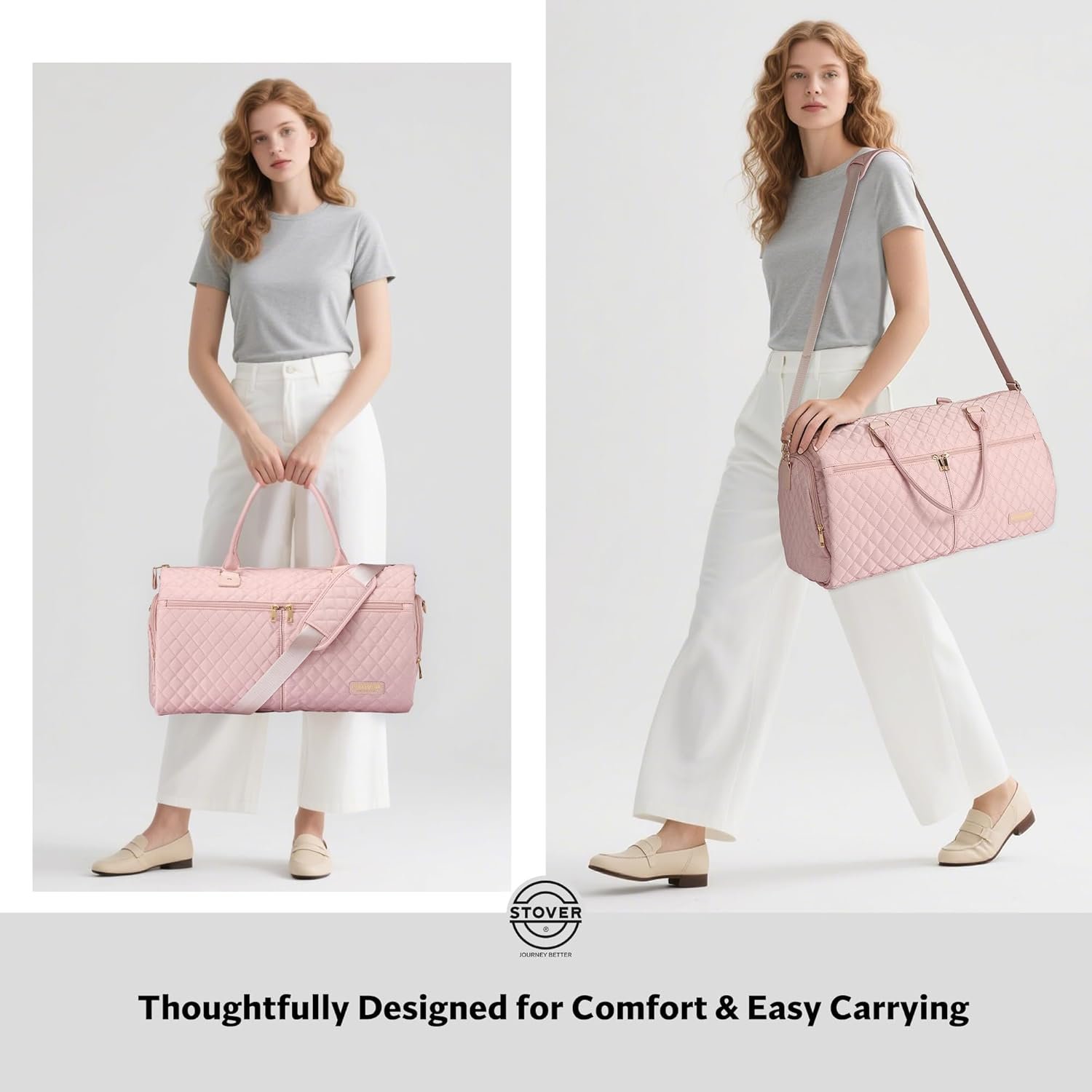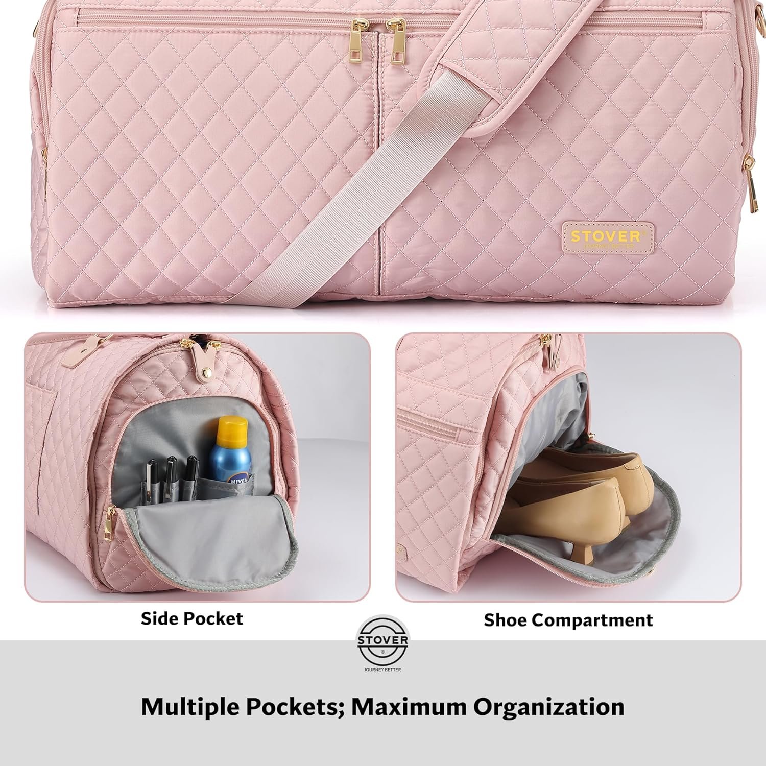 LARGE CAPACITY DUFFEL BAG: Once zipped up this carry-on garment duffle bag has a large capacity, giving you lots of room for folded clothes, accessories & any other travel needs. It easily fit outfits for 3-5 days away, plus has a separate shoe compartment.