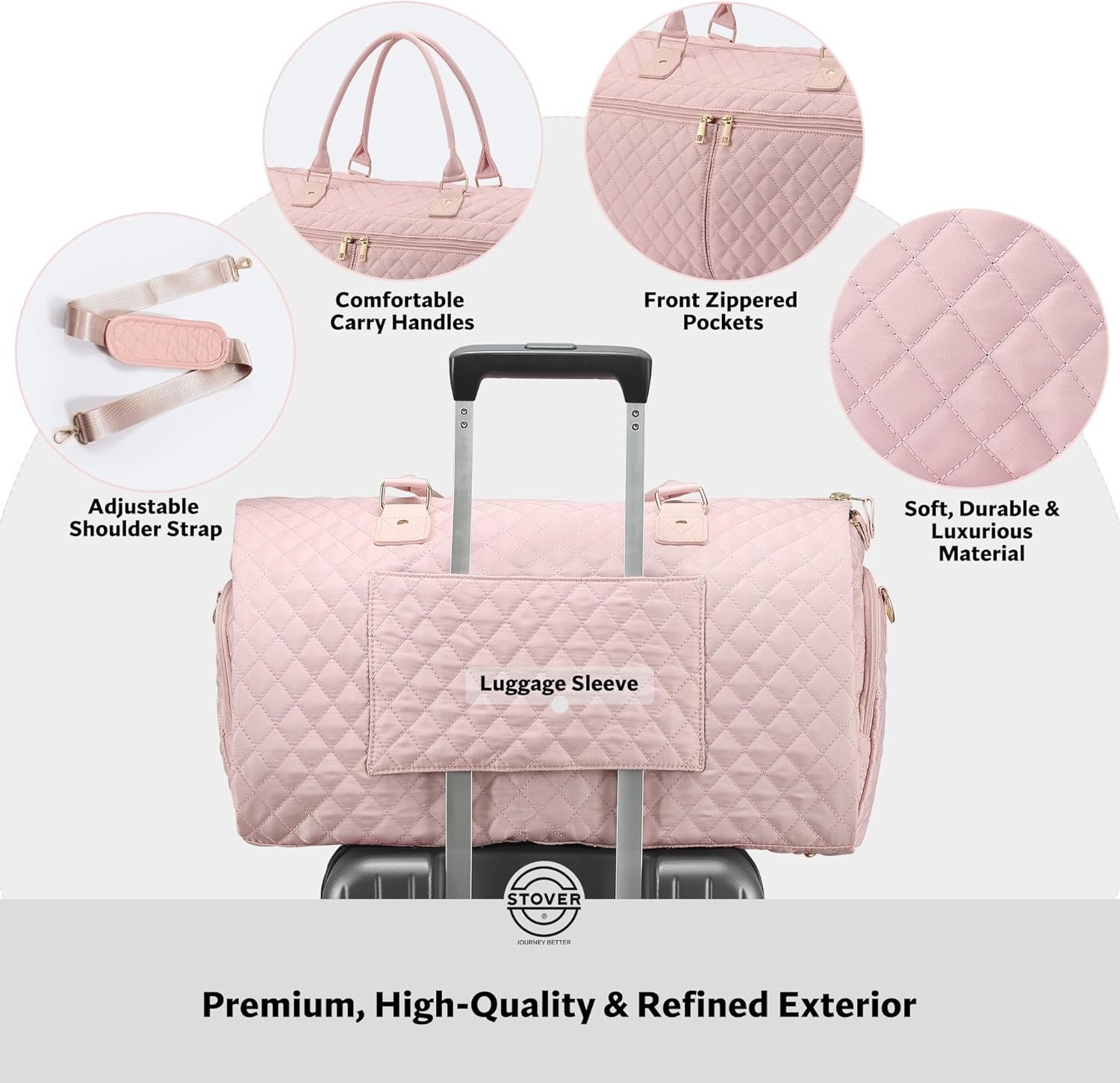 PREMIUM, HIGH-QUALITY, REFINED EXTERIOR: The exterior features multiple pockets, comfortable carry handles, a removable & adjustable shoulder strap plus a luggage sleeve to attach your bag to the handle of a suitcase. It’s chic, versatile design makes this weekender bag perfect for any occasion.