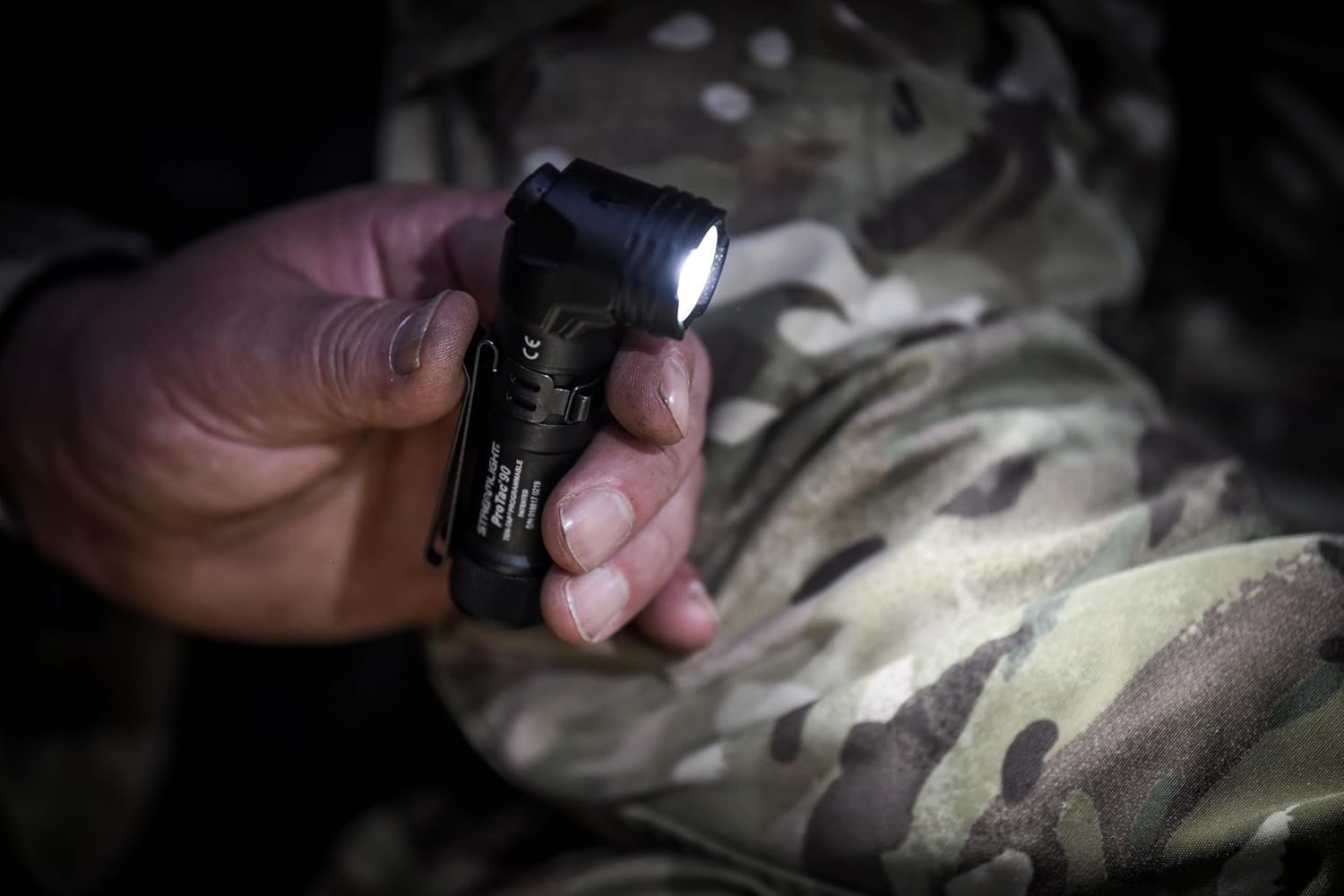 The Streamlight ProTac 90X right-angle tactical flashlight—88094 (ProTac 90X) and 88095 (ProTac 90X USB)—packs 1,000 Lumens, 7,350 Candela, and a 171-Meter beam distance into a compact EDC body designed for duty, rescue, and everyday carry. Its right-angle head keeps the beam where you need it and enables hands-free use when clipped to MOLLE, belts, or harnesses, while the low-profile form (about 4.39 Inches long; 4.4–4.9 Ounces) carries comfortably all shift. The multi-fuel platform runs on the SL-B26 protected Li-Ion rechargeable battery pack or two CR123A cells for power flexibility in the field; choose 88094 if you want the CR123A bundle with holster, or 88095 for the USB-rechargeable kit with SL-B26 battery + USB cord + holster. With up to 1.75 Hours on high (and long low-mode runtime), TEN-TAP programming, and rugged anodized aluminum construction, the ProTac 90X is a go-to right-angle EDC flashlight for first responders and prepared civilians seeking a 1000-Lumen, USB-rechargeable/CR123A multi-fuel light that’s compact, durable, and mission-ready.