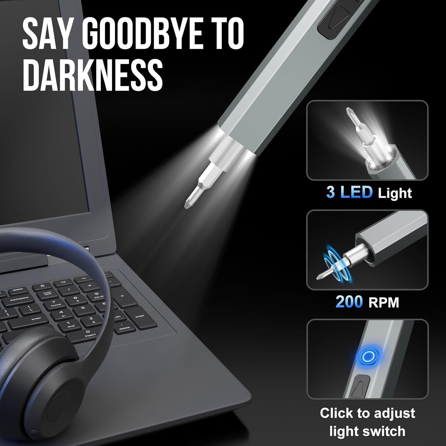 Time-Saving Electric Screwdriver: The electric screwdriver cordless has a rotational speed of up to 200 RPM, ensuring quick and efficient screwdriving. The electric torque can be adjusted from 0.15 to 0.5 N.m, providing precise control for different jobs. For tight screws, loosen manually with up to 7 N·m torque. This power screwdriver also features a square shape with a circular arc for a comfortable non-slip grip