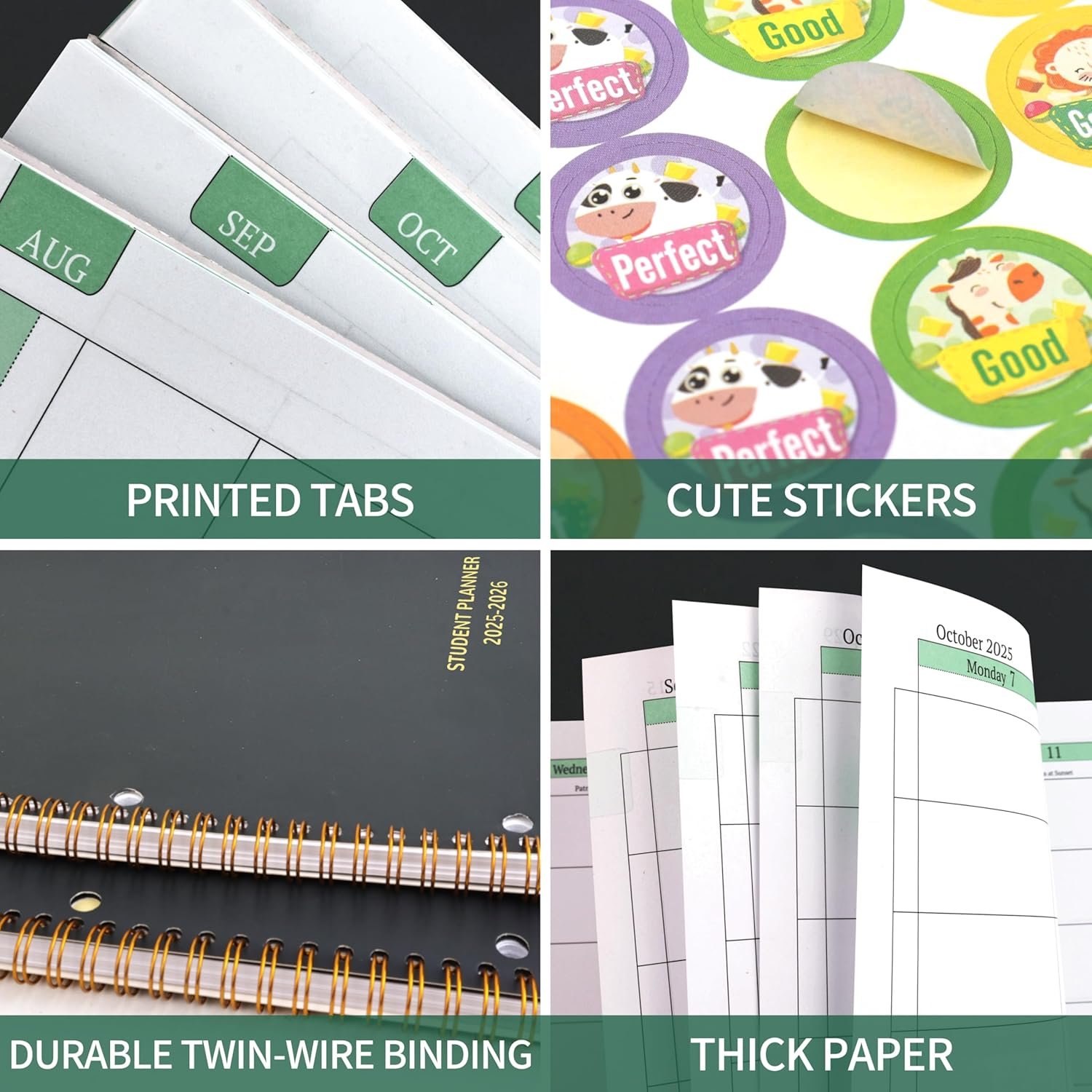 ✨ Superior Quality: The student planner measures 8.2″ x 10.7″ and has thicker paper, which can prevent bleed-through and resist smudge, always keep your writings tidy. The stylish cover and sturdy flat spiral binding give this 2025-2026 school planner a vibrant appearance to liven up your day and ensuring its durability throughout the academic year and beyond. Enhance your productivity and time management skills with this 2025-2026 student planner, designed to help you succeed in school.