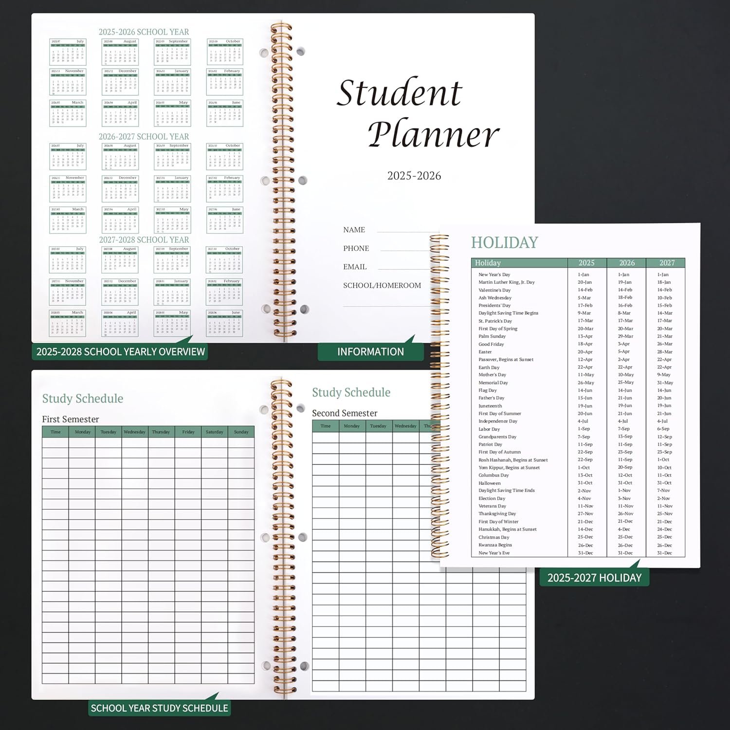 ✨ 2025-2026 Student Planner: Our Student planner 2025-2026 covers 12 months monthly pages(July 2025 – June 2026) and academic year weekly planning pages(August 2025 – June 2026) for middle and high school students easy academic planning and scheduling, providing a comprehensive schedule for your school year. Keep track of academic schedules, assignments, and extracurricular activities with this student planner 2025-2026. Perfect for middle and high school students studying in school or at home.