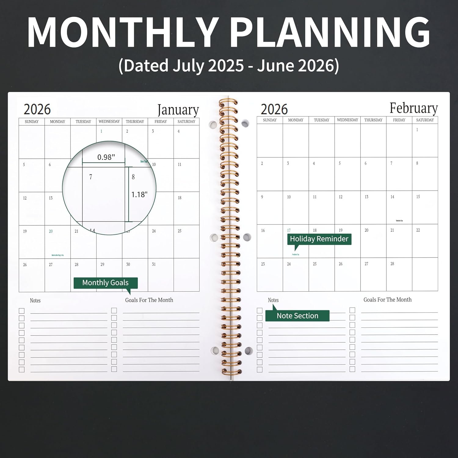 ✨ Monthly Planning: This 2025-2026 student planner has 12 monthly planning pages (July 2025 to June 2026) with marked holidays. Monthly view pages of this student planner 2025-2026 features unlined daily calendar blocks(0.98″ x 1.18″), which offers enough space for writing. Each month includes a dedicated To-Do list and goals for this month for recording important tasks. Plan your schedule, assignments, and exams efficiently with the 2025-2026 school planner designed specifically for students. Streamline your studies and never miss an important date with all the essential information in one place.