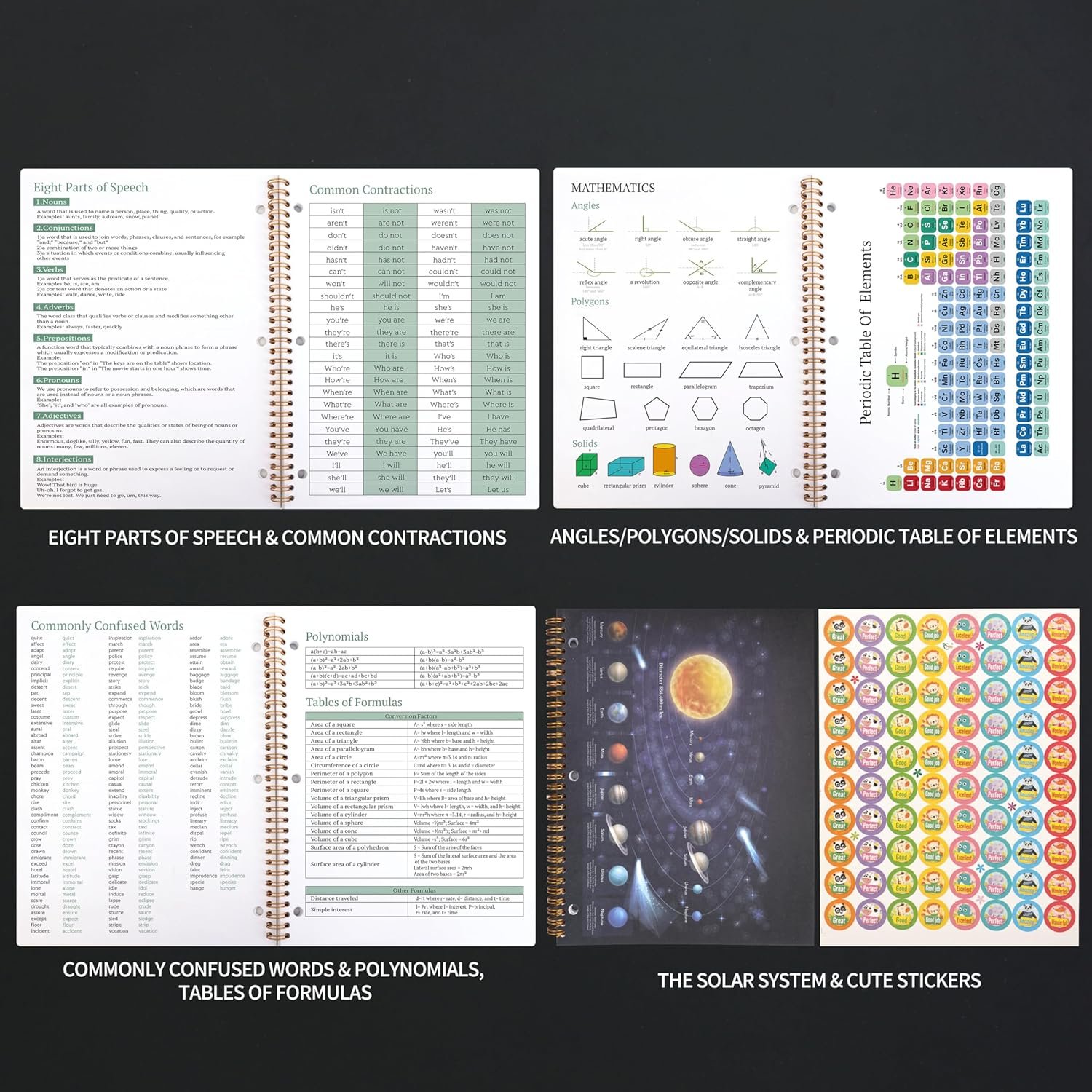 Eight Parts Of Speech & Common ContractionsCommonly Confused Words & PolynomialsTables Of FormulasAngles/Polygons/Solids & Periodic Table Of ElementsThe Solar SystemCute Stickers