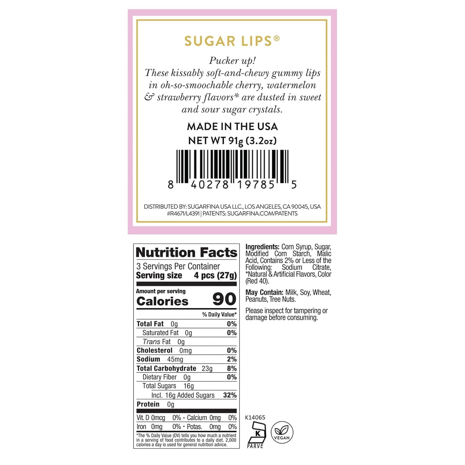 Pucker Up Sugar Lips: Pucker up! These kissably soft-and-chewy gummy lips in oh-so-smoochable cherry, watermelon & strawberry flavors* are dusted in sweet and sour sugar crystals.