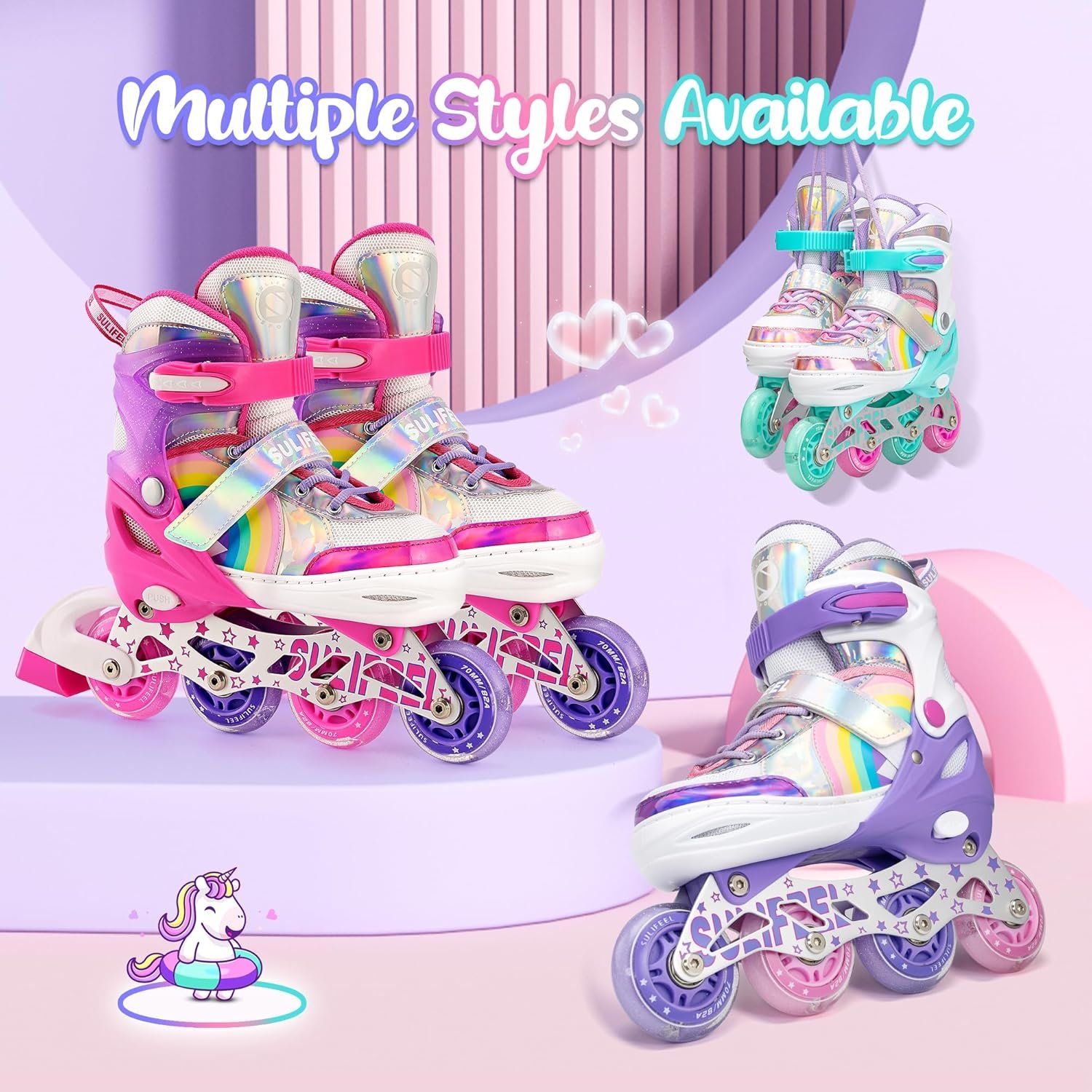 Be the first to review “SULIFEEL Rainbow Unicorn Inline Skates for Girls Boys 4 Size Adjustable Light up Wheels Skates for Kids Beginner”