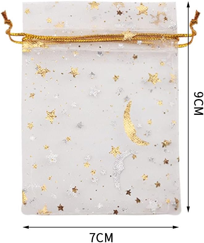 High-quality materials: Our moon star organza jewelry candy bags are made of high-quality organza materials, which are not easy to wear. We also use bronzing printing, which is more beautiful.