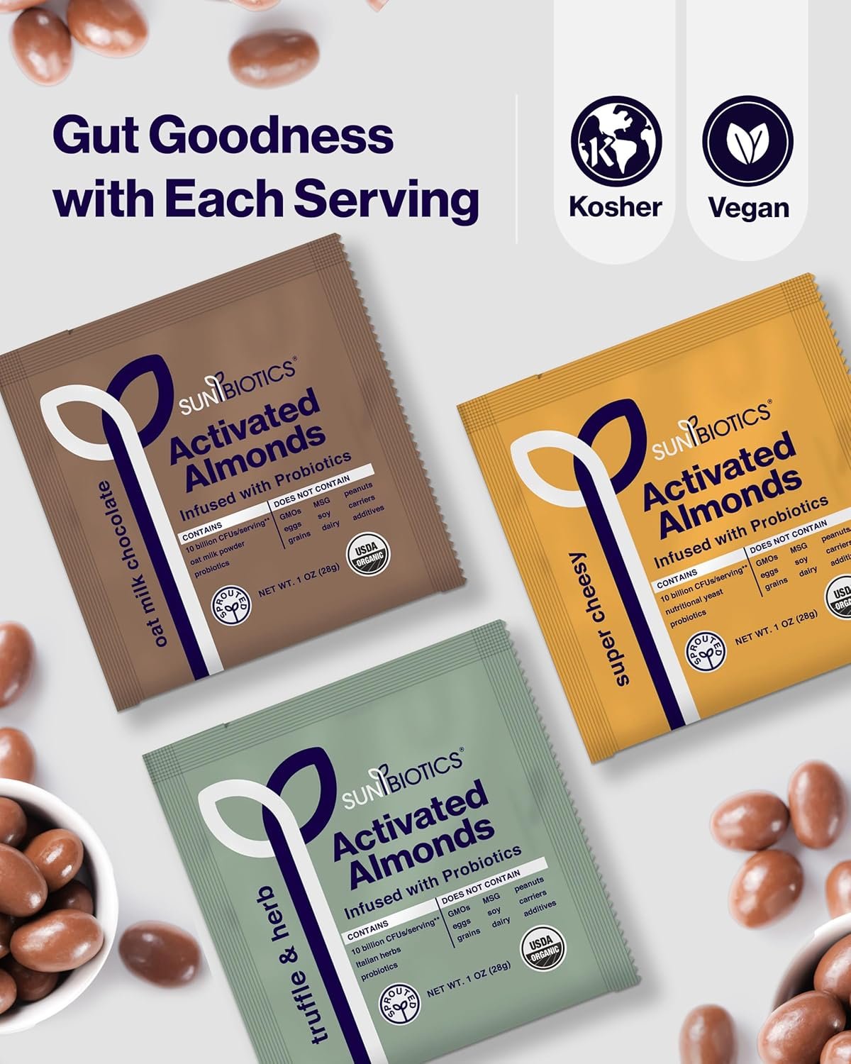 Deliciously Digestive for Kids and Adults: These natural almonds offer 3 flavors that even kids can’t resist! Packed with probiotics to support gut wellness, they are the perfect wellness-boosting snack for the whole family.