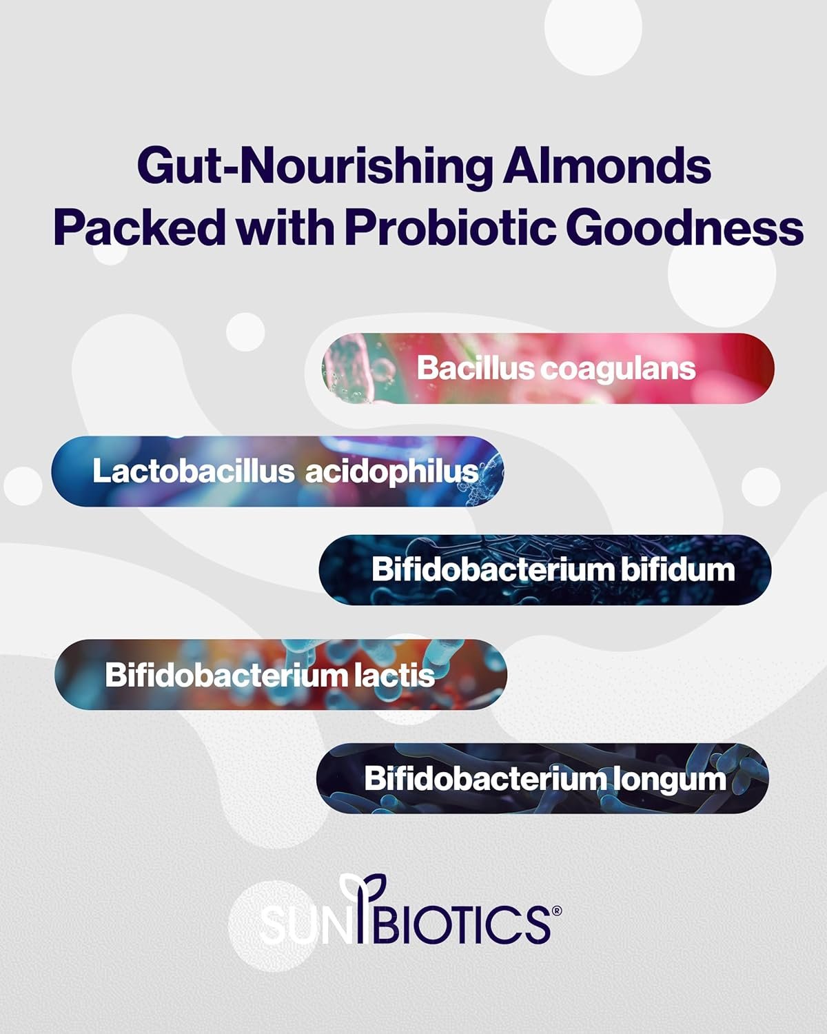 Complete Gut Support in Every Bite: Our sprouted almonds feature a premium blend of essential probiotic strains—Bacillus coagulans, Lactobacillus acidophilus, Bifidobacterium bifidum, Bifidobacterium lactis, and Bifidobacterium longum.