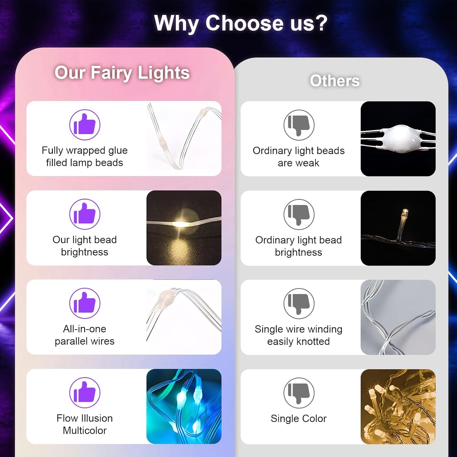 Enhanced Safety: Twinkle string lights utilize low-voltage LED beads, eliminating the need for open flames and reducing heat emissions. They are safer and more reliable compared to traditional indoor fairy lights, minimizing the risk of fire hazards and making them particularly suitable for prolonged use or in environments with children or pets