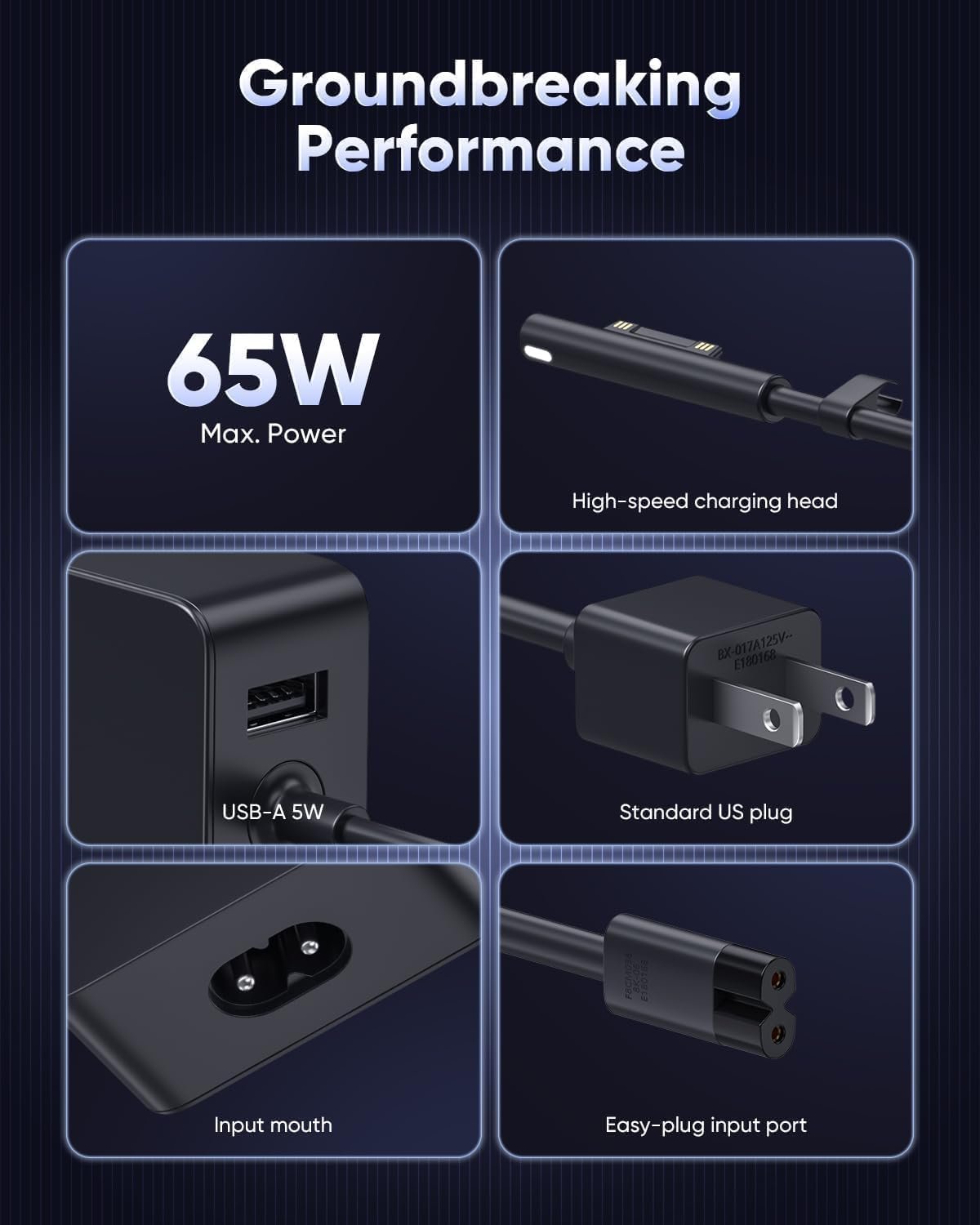 [๐๐จ๐ฆ๐ฉ๐๐ญ๐ข๐๐ฅ๐ ๐๐ฎ๐ซ๐๐๐๐ ๐๐จ๐๐๐ฅ๐ฌ] — 65W Microsoft Surface Charger for Surface Pro 3, Surface Pro 4, Surface Pro 5, Surface Pro 6, Surface Pro 7, Surface Pro 7+, Surface Pro 8, Surface Pro 9, Surface Pro 10, Surface Pro 11, Surface Pro X, Surface Laptop, Surface Laptop 2, Surface Laptop 3, Surface Laptop 4, Surface Laptop 5, Surface Laptop 6, Surface Laptop 7, Surface Book 1, Surface Book 2, Surface Book 3, Surface Go1, Surface Go2, Surface Go3, Surface Go4, Surface Laptop Go, Surface Laptop Go 2, Surface Laptop Go 3, Surface Laptop Studio.
