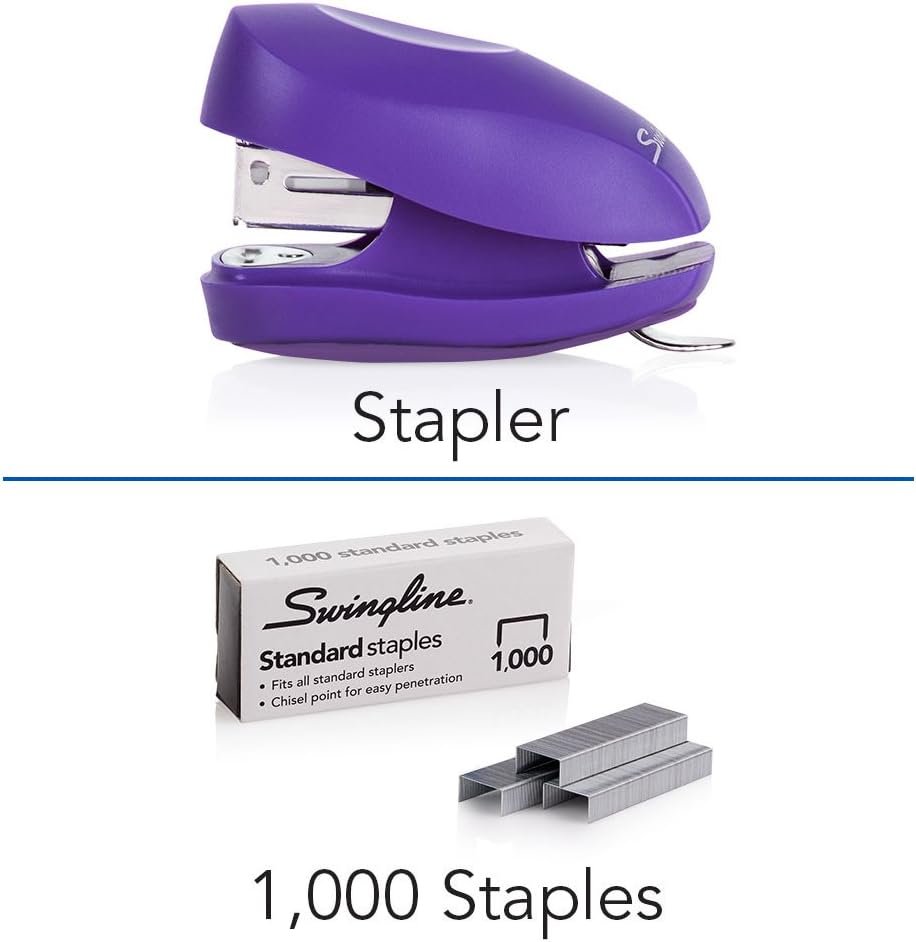 The tiny Tot Stapler brings a pretty pop of color to any desk, along with the high-quality stapling reputation that comes with Swingline. This charming mini stapler provides a convenient option for stapling when space is at a premium. It’s reliable and durable—constructed of strong, high-impact plastic. Cute little stapler comes with all of the accessories needed for everyday stapling. It comes with 1,000 standard staples and a built-in staple remover for your convenience. It works best with Swingline standard staples, with ¼” length legs, and securely attach up to 12 sheets of paper. Pretty purple coloring ensures that this stapler stands out in any office or classroom setting. The base of the stapler doubles as storage compartment for extra staples. Stapler comes with a one-year limited warranty.