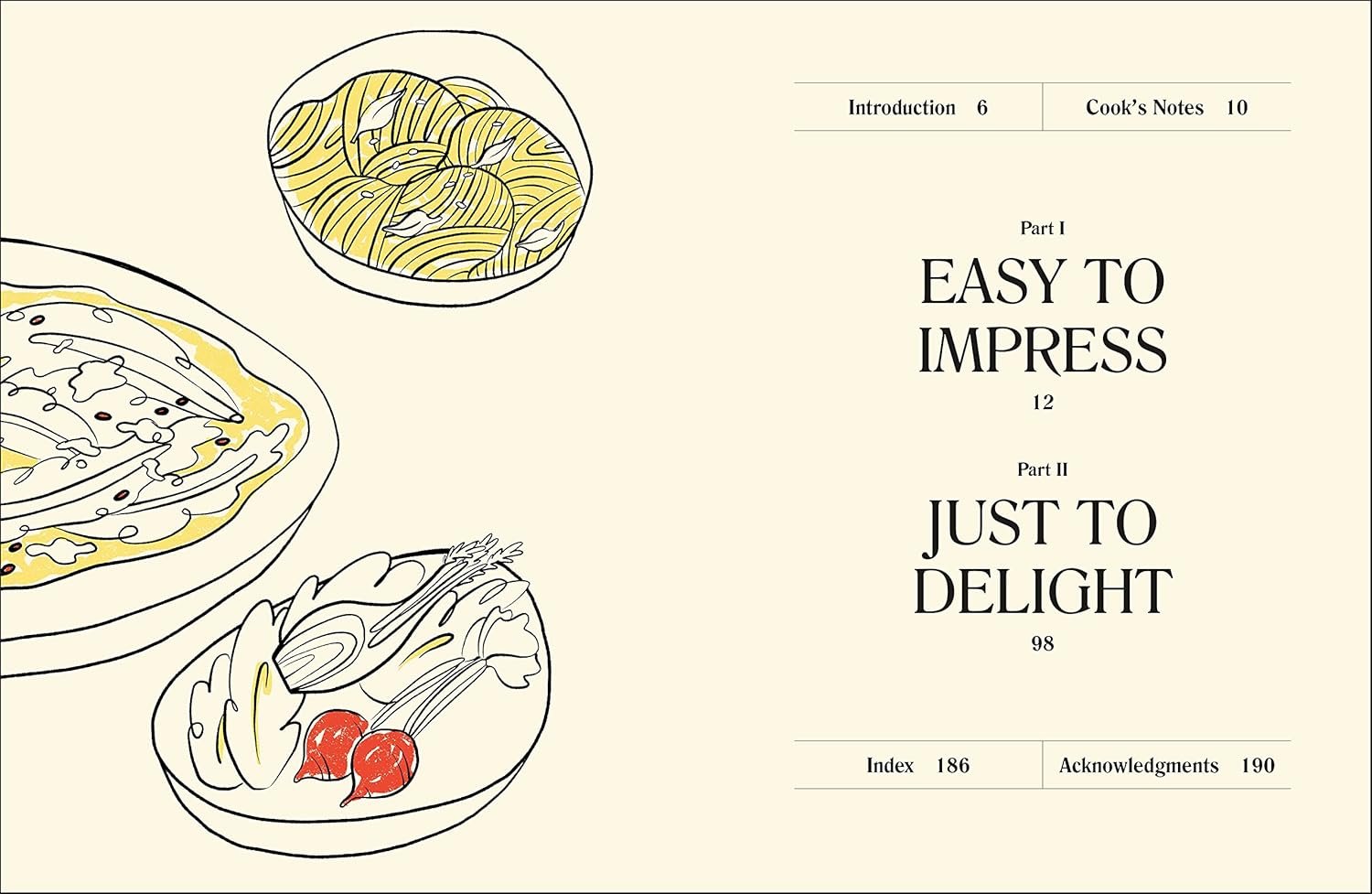 From uncomplicated-but-outstanding in Part I, to over-the-top-but-no-stress cooking in Part II, Table for Two helps you impress at breakfast, lunch, aperitivo, dinner, and dessert. With illustrated essays on topics like the simple pleasure of a delivery pizza, and breathtaking, multi-course menus catering for special occasions, Table for Two guides you through the moments you want to say: “I love you, let me feed you something that will make you feel good.”
