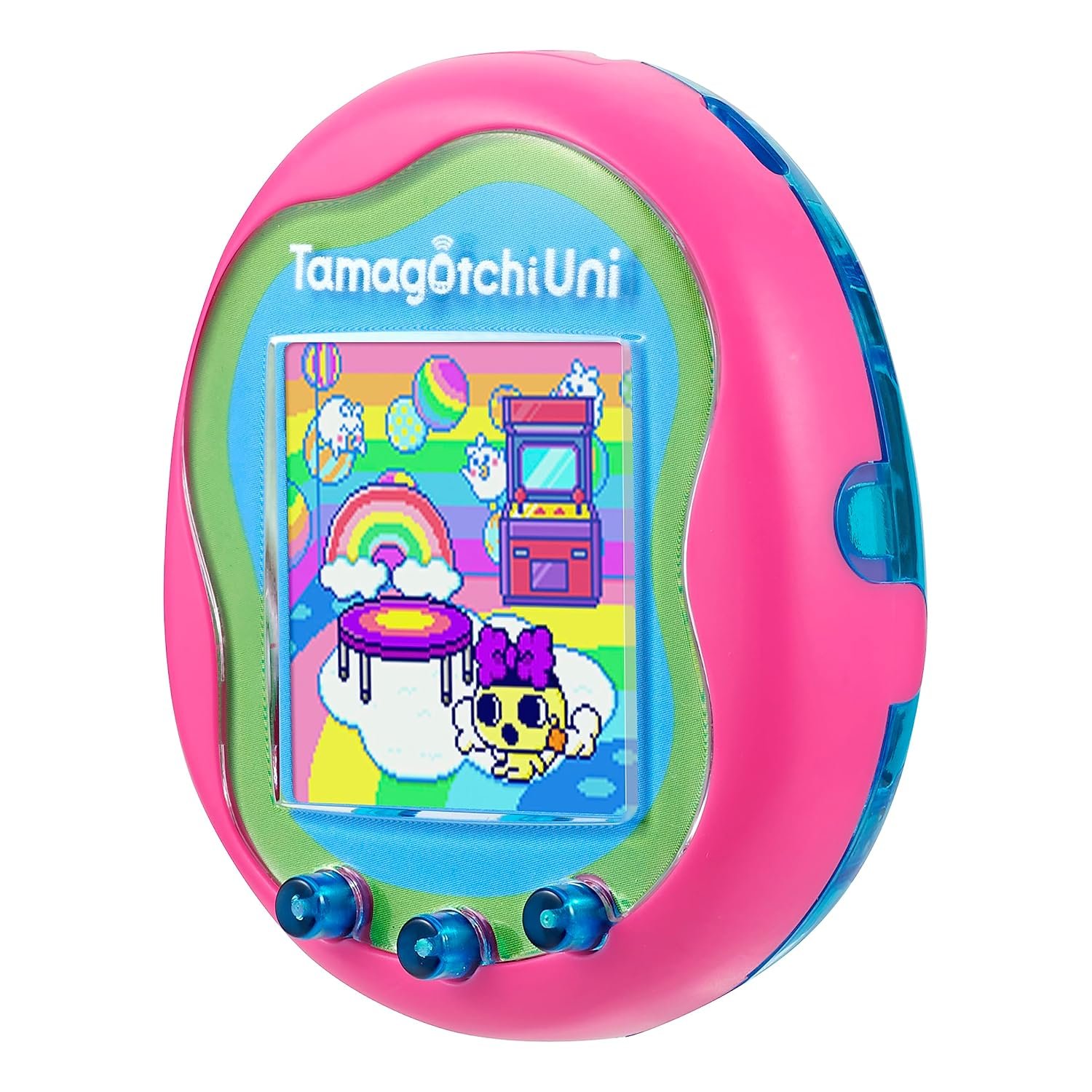 Tamagotchi Uni is the newest generation of your favorite interactive virtual pet with a pink shell and allows fans to connect in a completely new way – the Tamaverse!