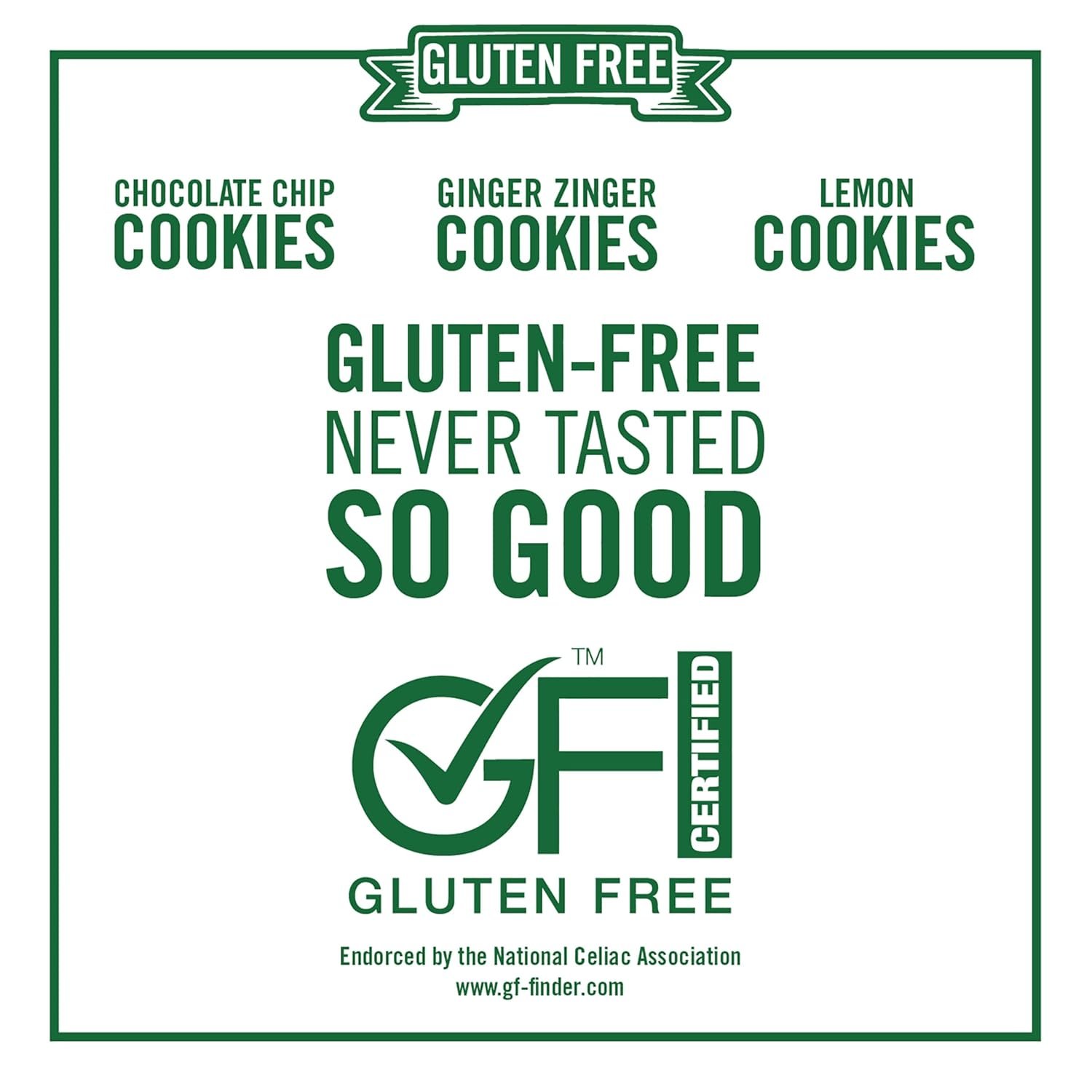 Treat yourself to a bake shop quality snack with no wheat when you grab the Tate’s Bake Shop Gluten Free Cookies Variety Pack. Each cookie assortment includes 3 flavors: Gluten Free Lemon, Gluten Free Ginger Zinger and Gluten Free Chocolate Chip cookies. Each flavor of gluten free cookie is uniquely crispy and deeply delicious. Serve them on cookie trays as gluten free party snacks, or enjoy the lemon, ginger or chocolate cookies as a simple, sweet dessert. These Tate’s Bake Shop cookies are also delicious crushed as a gluten free dessert topping or to add to your favorite dessert recipes. Each 7 ounce reclosable bag keeps the crispy cookies protected and fresh.