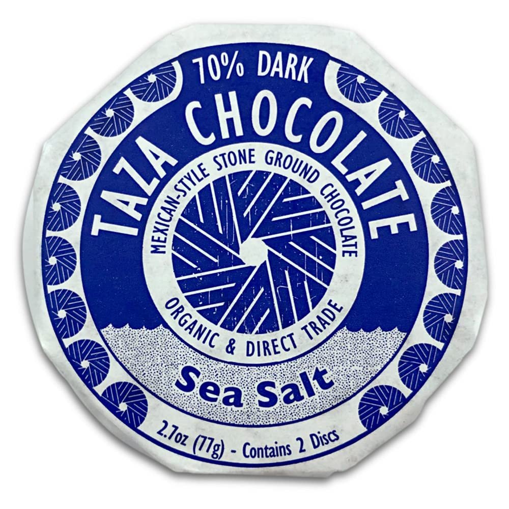 Stone Ground, organic Mexican-style dark chocolate discs with a sprinkle of sea salt for that irresistible salty-sweet flavor combination; 70% cacao makes our Sea Salt chocolate discs an indulgence you can feel good about They’re delicious to eat or drink; Break them into wedges and snack on them just like a round chocolate bar; Or, grate them to make incredible hot chocolate; At Tazi we use hand-carved granite millstones to create a bolder, less processed chocolate that captures the incredible flavors and textures of our premium organic Direct Trade cacao; Experience chocolate with true grit Two discs in each package, perfect for sharing.