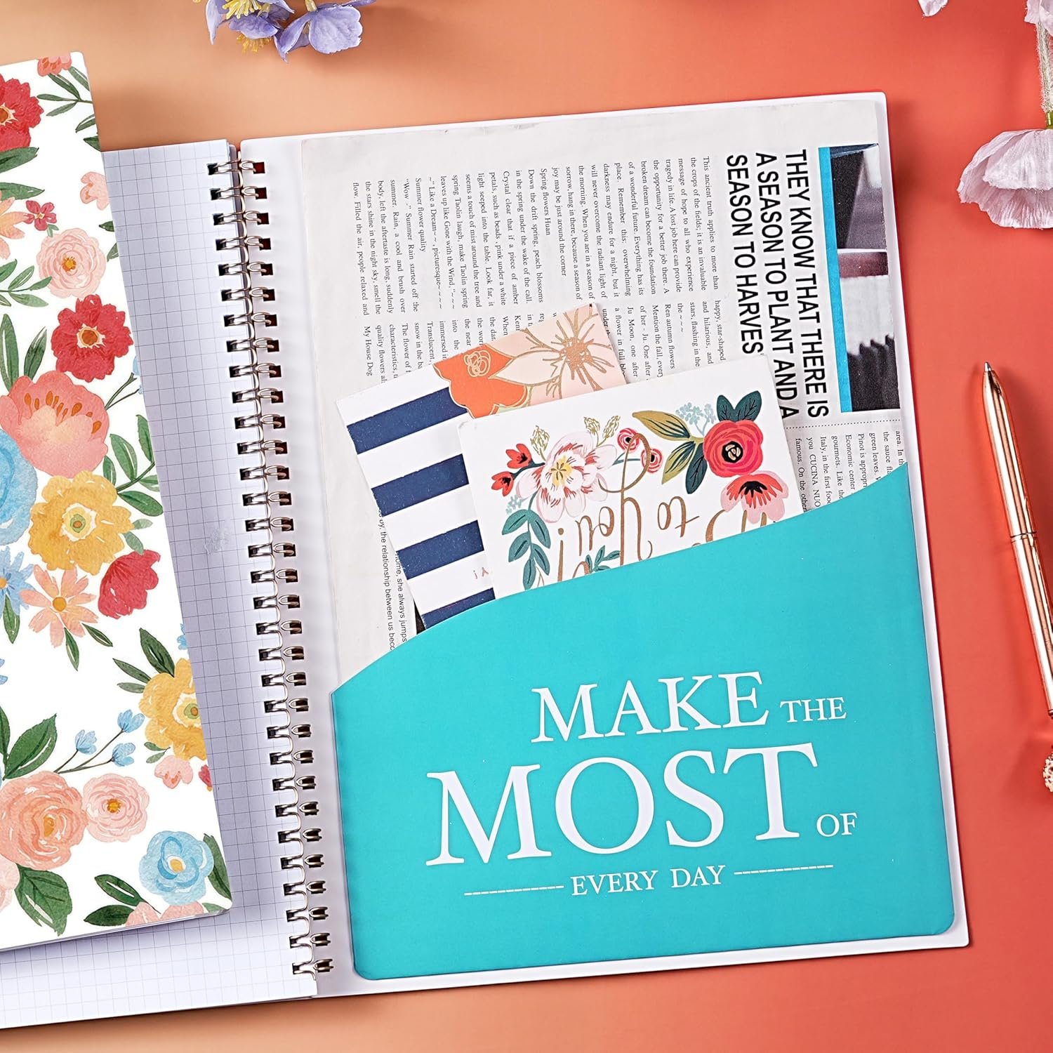 Daily blocks size: 1.65’’ × 1.69’’Ruled notes section & inspired wordsHighlighted holidaysPast and next month calendars reference