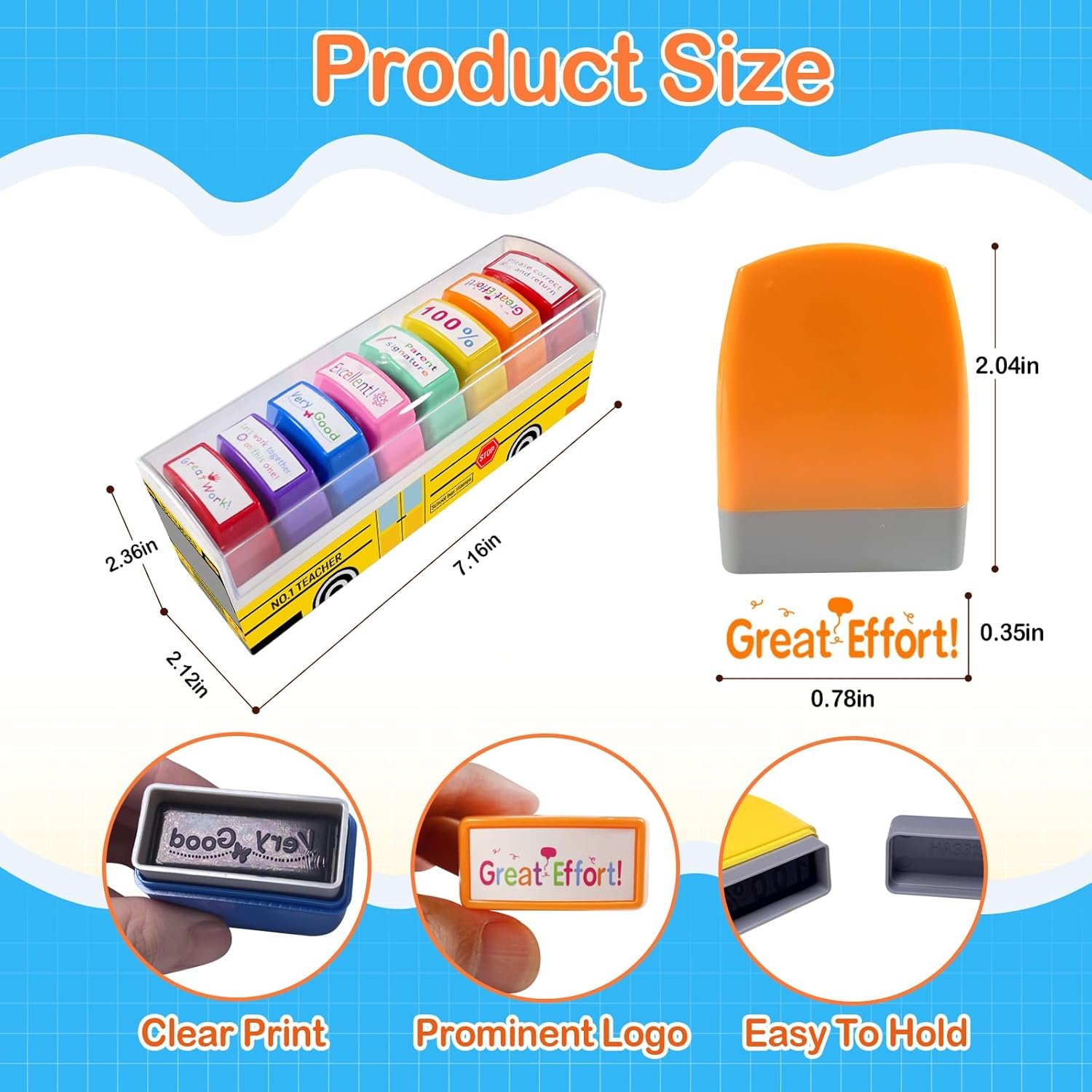 【ORGANIZED & PORTABLE WITH BUS TRAY HOLDER】The school bus storage tray keeps all 8 stamps neatly in place, so you’ll never misplace a stamp again. Easy to carry and store on a desk or in a drawer, making classroom setup and cleanup quick and effortless.