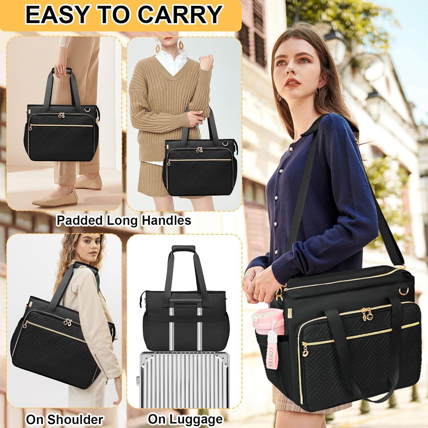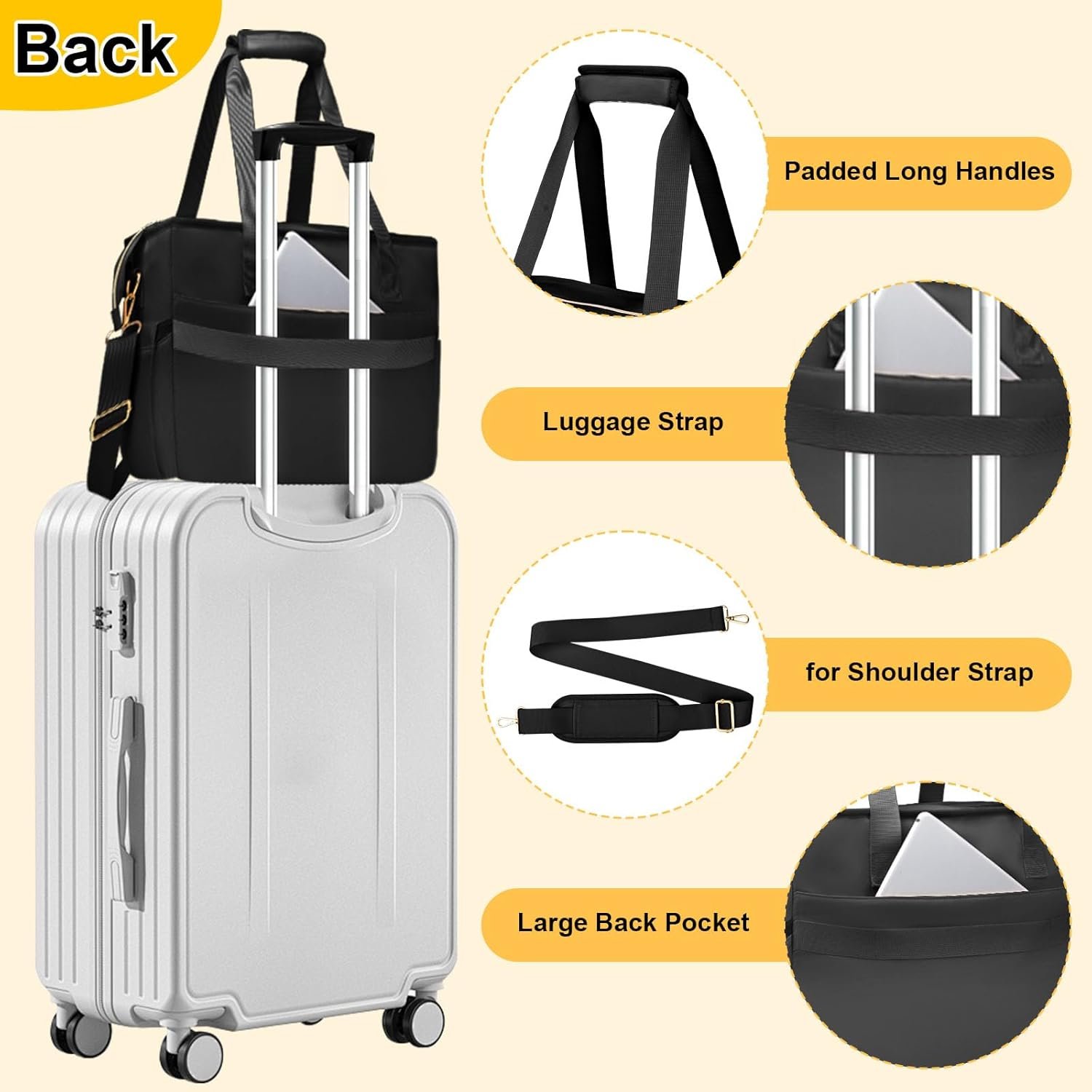 【Convenient Carrying Ways】The teacher tote bag with accordion zipper compartment has an adjustable shoulder strap and long padded handles, you can carry it on your shoulder. The luggage strap at the back of the tote bag for school can be attached to a suitcase, making it easy to carry when traveling.